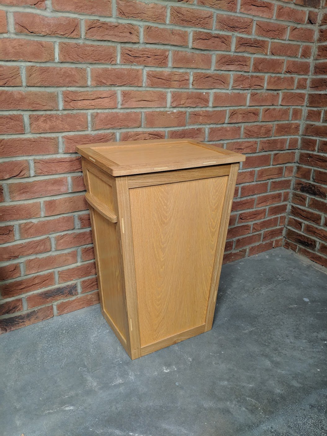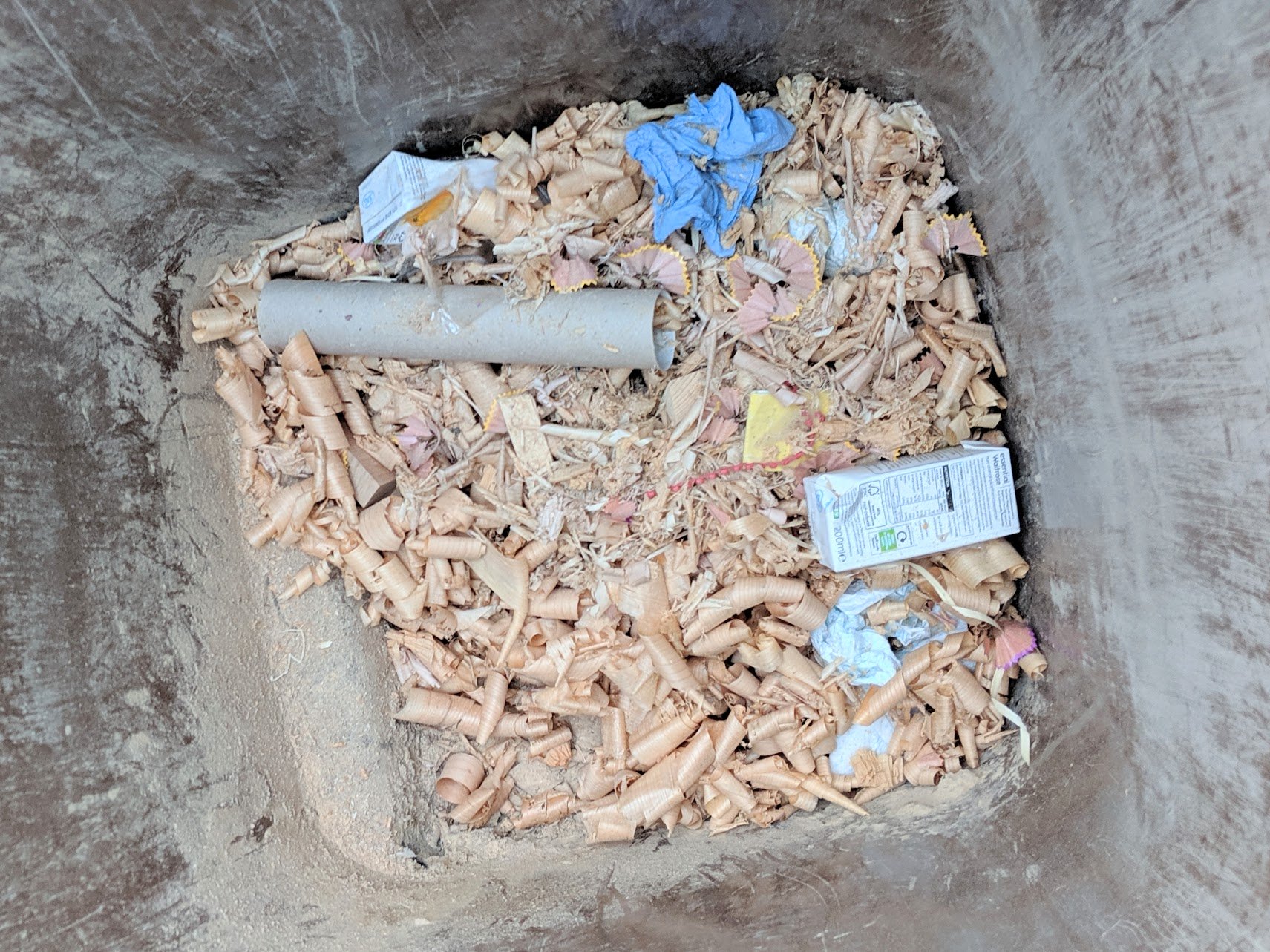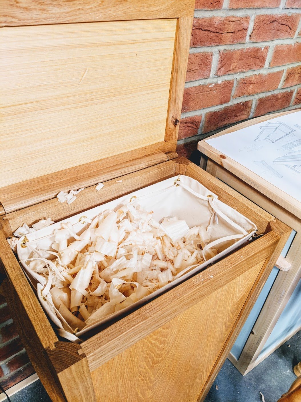 Now in general waste there can be anything that cannot generally be recycled, everything from rags and broken bricks to non recyclable plastic containers, styrofoam, bubblewrap or whatever. Now some of you might recall the lengthy efforts I went to to make wooden bins to replace the ugly plastic ones I had currently been using in an effort to improve my footprint on the earth. I then found a maker of cotton bags to which I added brass rings and draw strings for dry shavings that fit inside the bin and so on.
