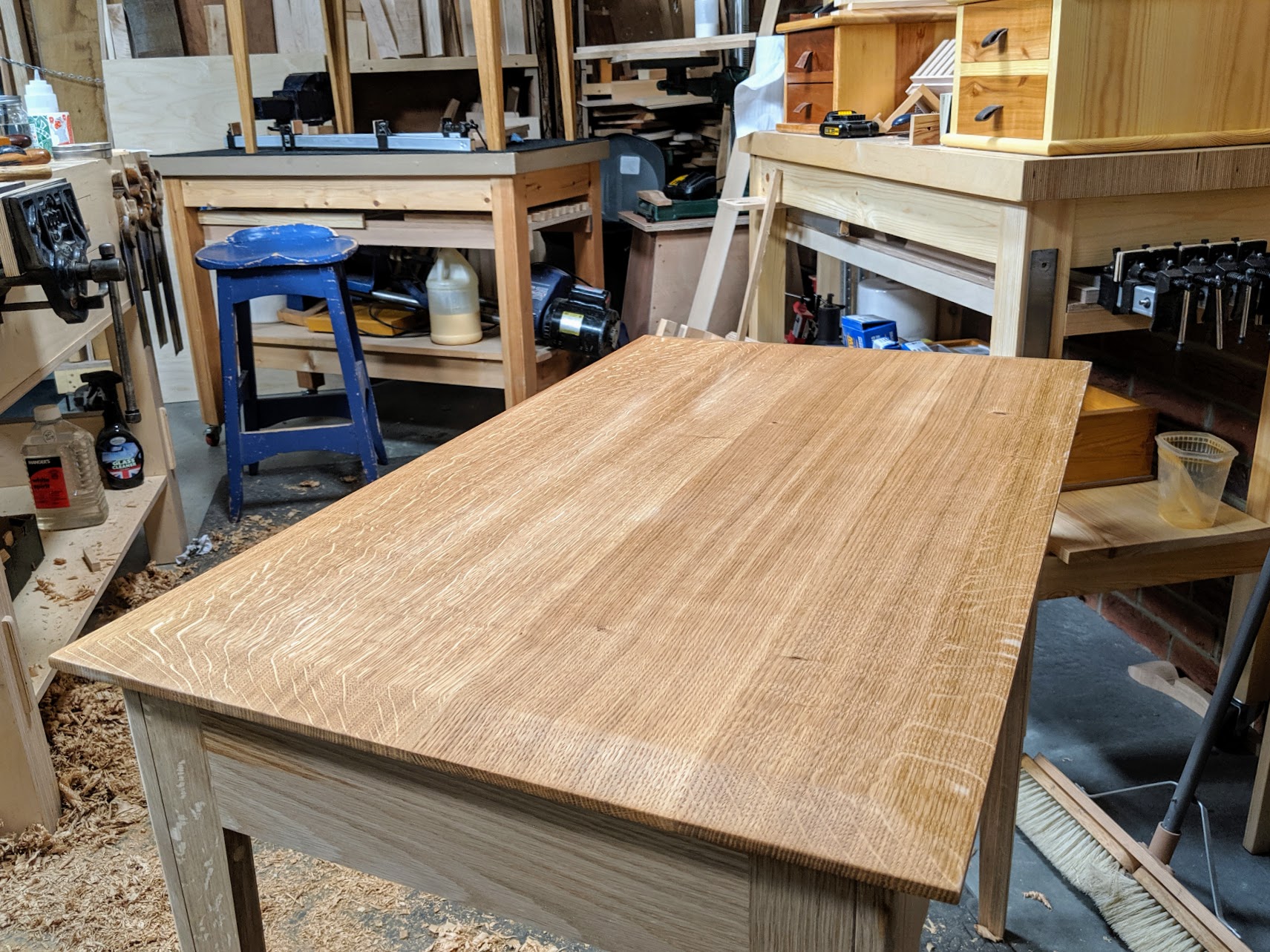 I had to stop working on my project after my prototype was completed and half way through the real one because we had work being done on the building and the noise levels would have sounded like a violent horror movie. It's funny that I enjoyed making both, even though there is no difference between the two at all; both are made of oak, same identical joinery and component parts, but the break was welcome because I could catch up on some of my other non-filming things.