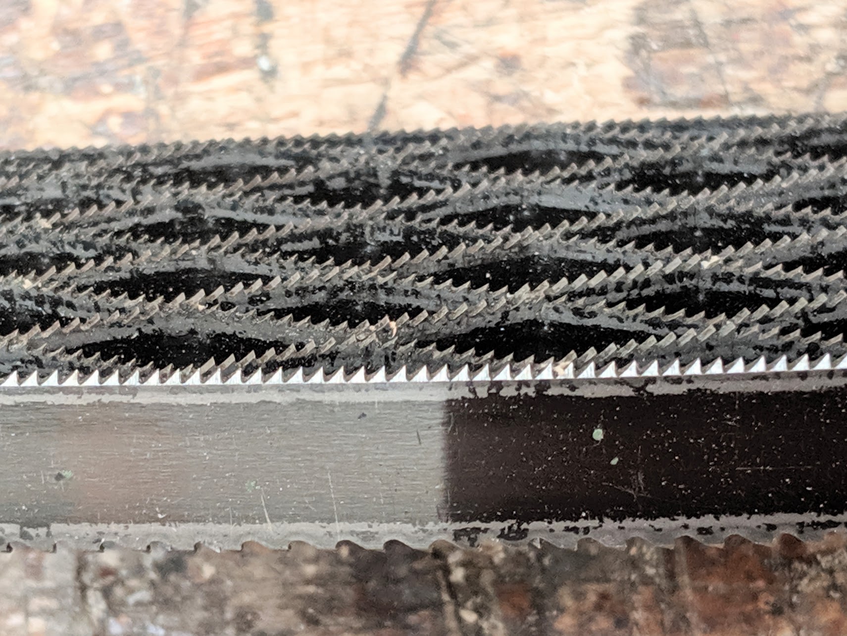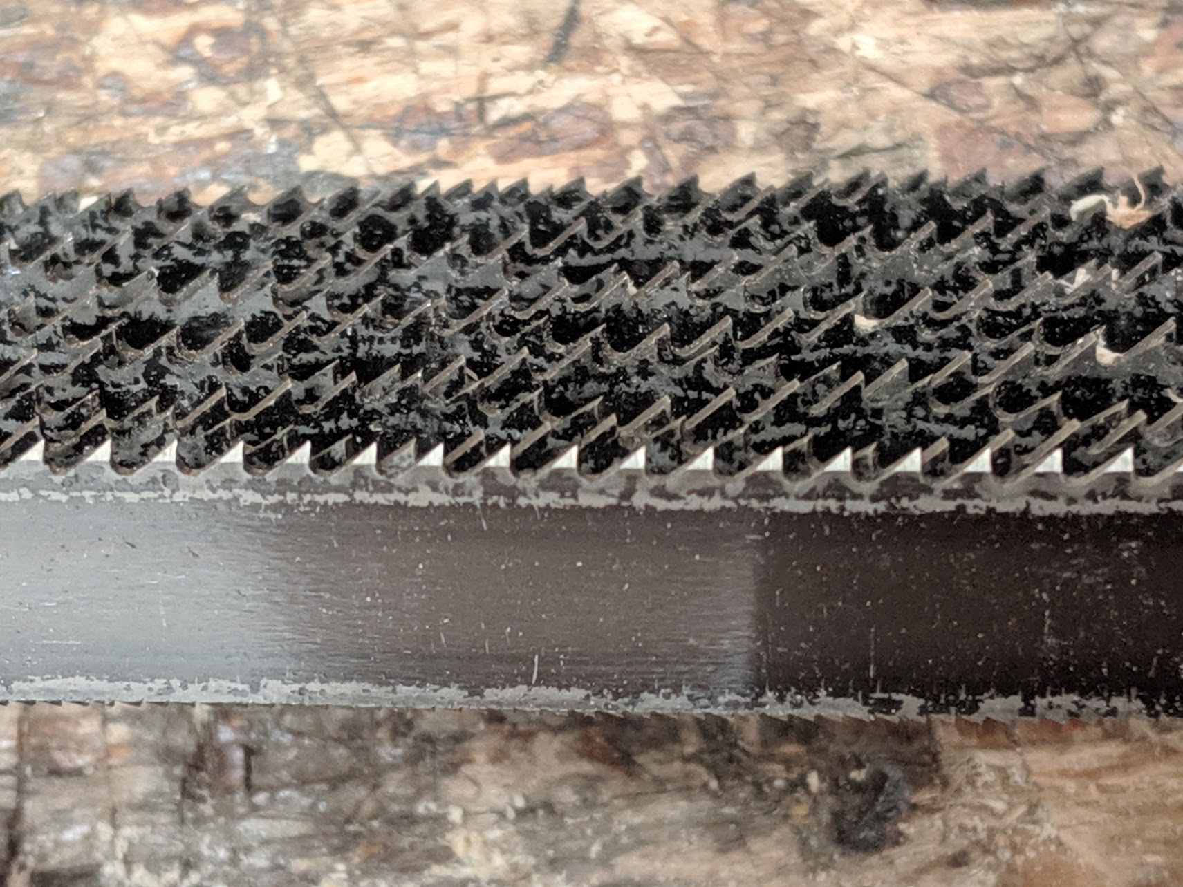 So just what is the difference between the true rasp and the Shinto alternative? There is a rhythm that comes from using a hand stitched rasp that I did not get using the Shinto and my feeling was that you cannot get the same feel because the teeth are not hand stitched and are therefor perhaps too uniform. When teeth are perfectly uniform in any saw type there is a harmonic that sets up that is not so much a mere sound as such but more the 'wolf' you get with bowed instruments like violins and cellos. This 'wolf' robs the instrument of its pure note; not all the time but often when you least expect or want it. This harmonic I speak of in the rasp means that the tool motion you use is more counterproductive than effective and counters the effort you make in the same way any vibration can become counterproductive to energy. Think the shudder of bike brakes, an unwanted vibration in an engine that just keeps developing and developing, that kind of thing.