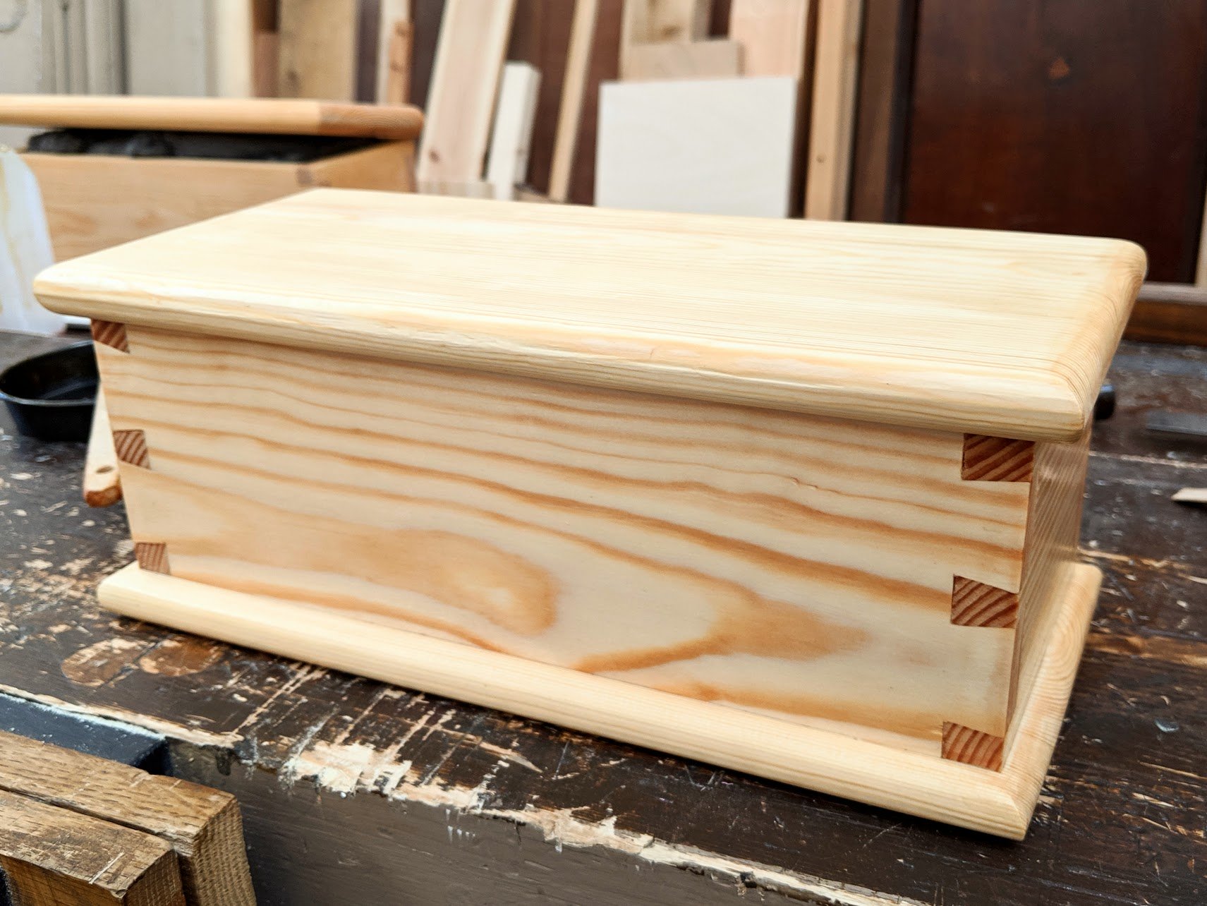 Jack's pine box follows a pattern. I was inspired by one I saw it in a book on Shaker pieces of treen 40 years back but changed its proportions and some of the details to suit my needs. Since then I have made at least 400 or more of them and sold them regularly when I lived in the USA. For Jack it concludes his foundation course, a course I developed and now put out via either woodworkingmasterclasses.com, commonwoodworking.com, YouTube and here on my blog. These channels replaced my first book to give total visual content for all and it has definitely reversed the unpleasant trend that my craft with hand tools was dying out. It also replaced my one-on-one courses with students attending my workshops though one day, if I live long enough, I will repeat them. I stopped because my workload doubled and even tripled when I took on filming my craft. Had I not taken this step many of the 'trade secrets' and less common practices would have been lost.