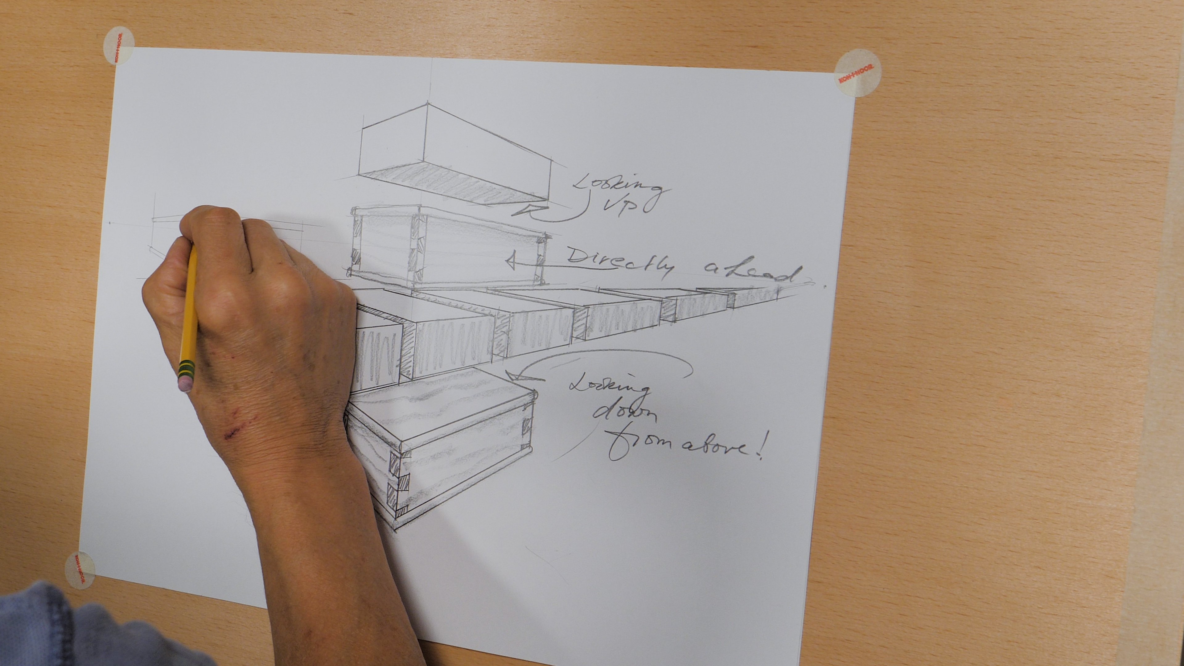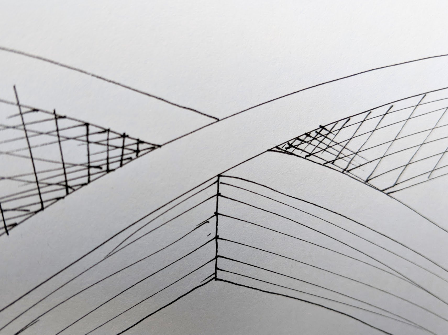 Sketch drawings reflect my gathering of thoughts. They may not exactly match my idea on paper but they will record that genesis and any discrepancy will be corrected as my brain fills in the blanks. It's a bit like placing a ruler along the top or bottom half of a line of text and you discover you can still accurately read the sentence flawlessly with or without the different curlycues.