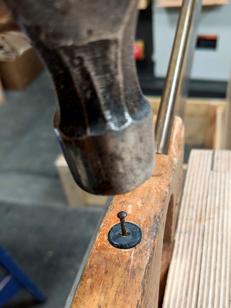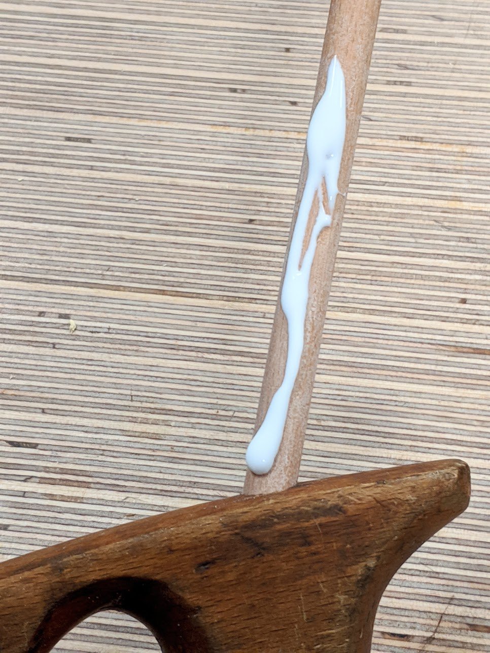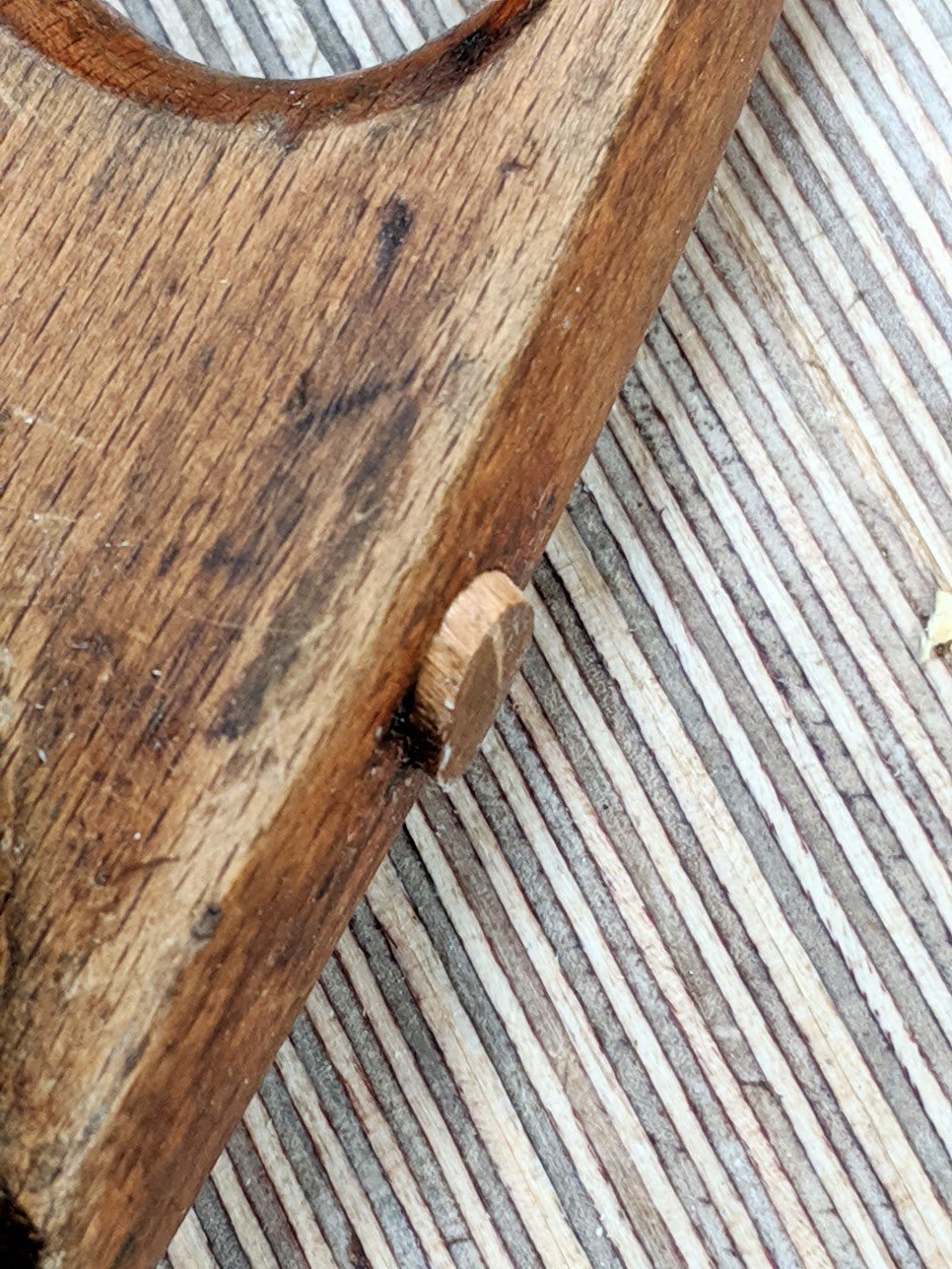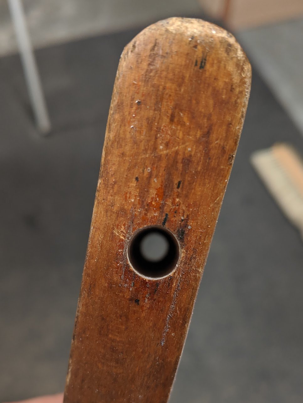 I reglued the rod in place but could see that the handle had been subjected to climate change and had shrunk 1/8" of an inch from top to bottom. I suspect a batch had been made with wood not fully dried down because of the range of shrinkage. A quick trim and sand and it is now as good if not better than when it was first made.