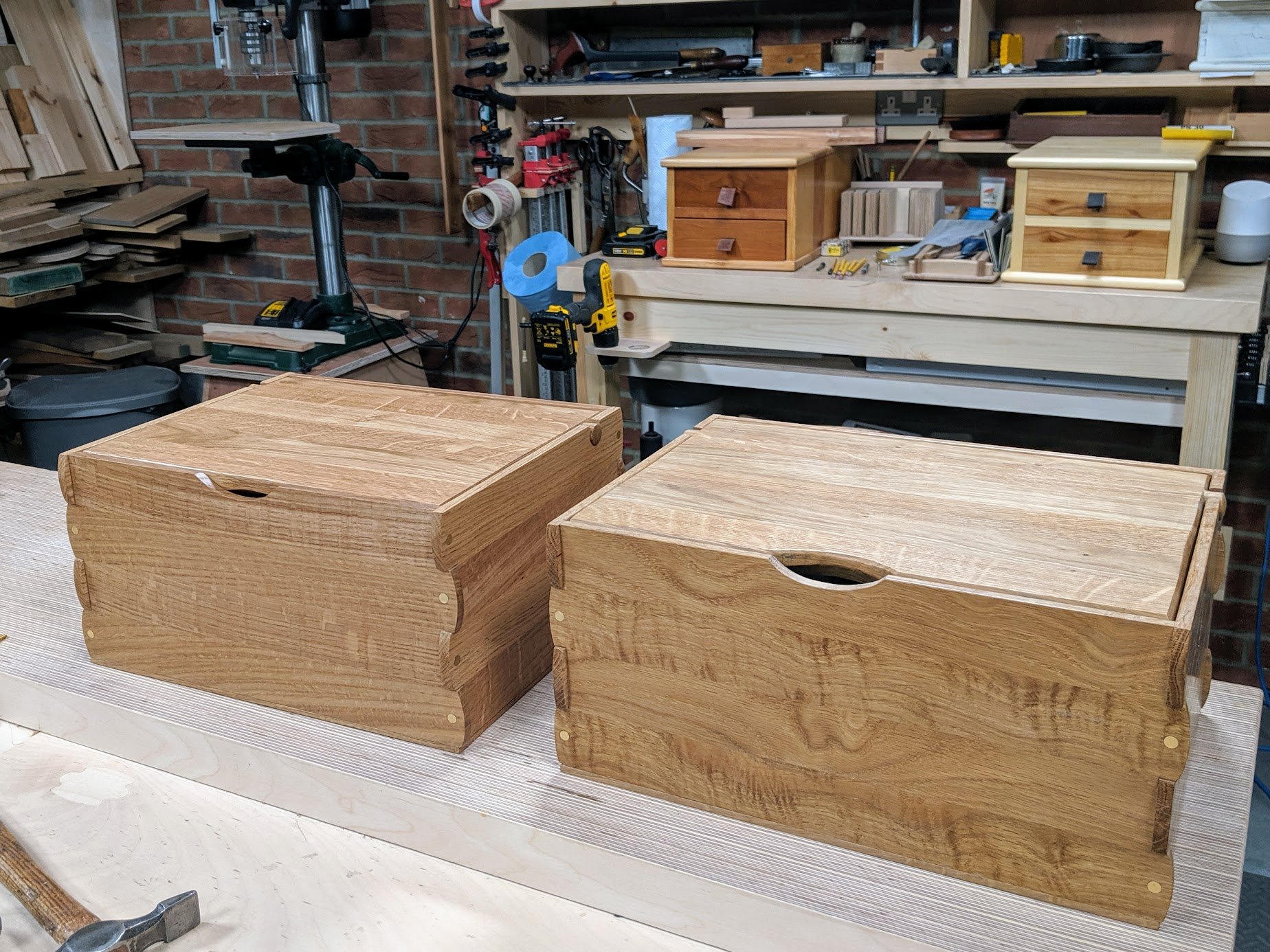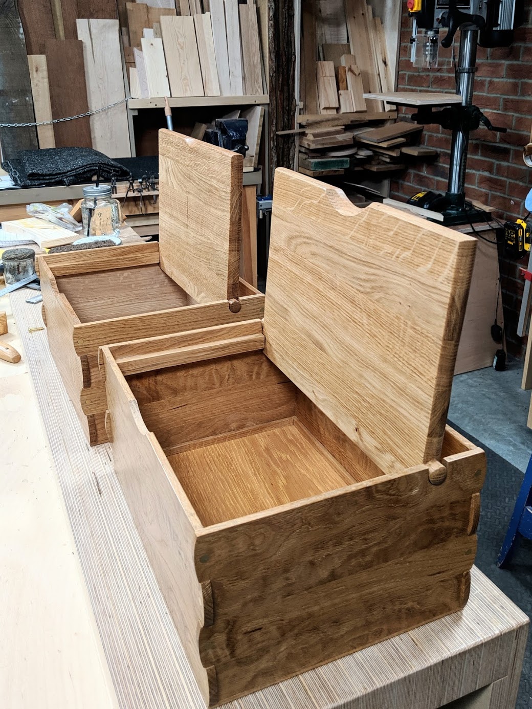 Part of my reasoning for not using dovetails was to rethink the joint to include metal fastenings for the joint securement. Also I knew too that I would not need clamps to seat everything. I have indeed filed the heads off screws for three decades and did it particularly when making bandsaw boxes was part of my daily bread work. In that case I didn't need to use the screw heads to hold the boxes together as the construction methods did that just fine.
