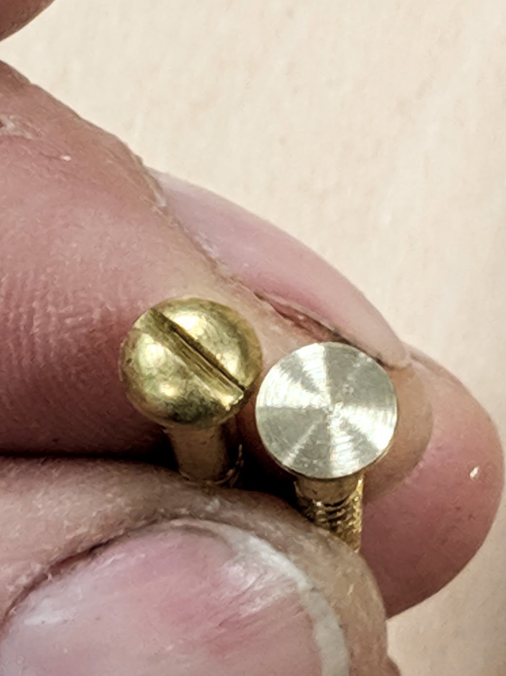 In my bread stow however I wanted more than just glue as the joint itself is less mechanical than say traditional joints like dovetails. But, more, the heads form full retention by my filing them into a rim that's recessed into the wood.