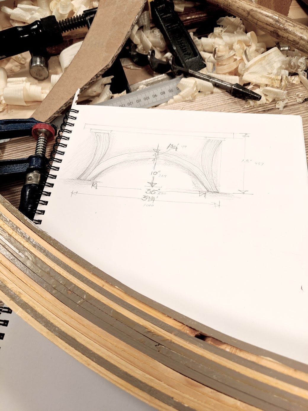 In the garage, my very personal creative workspace, I have a series of steps that I have taken to ramp up things for considering the first piece. I find myself not so much lacking confidence about how I build the first piece but more how. having all of you on this journey with me really helps. I know that perhaps the majority of you will not have nor could ever have a shop full of machines and so I am keeping my focus on my ever-important quest to work mainly with hand tools. The bandsaw has really helped me because sometimes I have to make even three of the same piece to iron out the bumps. Yes, I know, you like seeing me make mistakes, but I am not really talking about mistakes. We actually do leave most of them in. I really don't make too many. Joseph has always been a behind the scenes support, mostly because he never really saw himself as camera material and he has given unwavering support because he believes what I do is important to me.