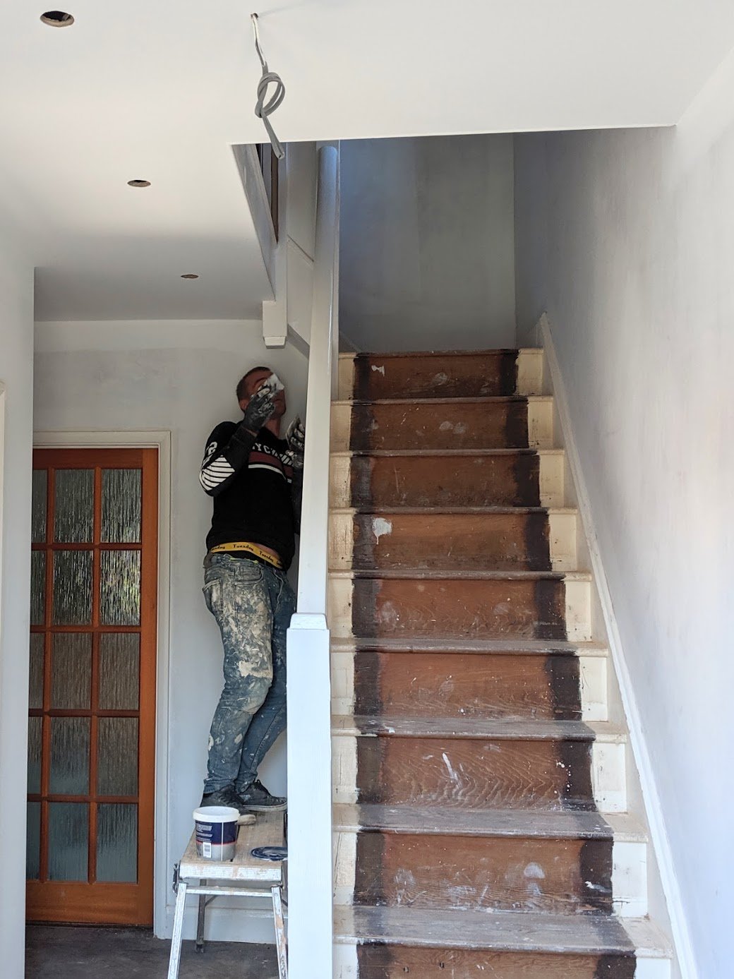 I was married at 21 and bought my first four-bedroomed house. It took some doing but hard work and saving hard meant that with an additional gift for a deposit I could get on the ladder towards owning my own home. In that house I took the bold steps towards early DIY as I ripped out all of the window frames and made new ones which I then installed one by one. I then rewired with new wiring throughout followed by installing a complicated system of central heating using water-filled radiators to every room. My brother helped me with the plumbing for that. I replaced the whole bathroom and kitchen too, building the cabinets and counters and such. I also took the p[lunge at my first bricklaying and built two new fireplaces floor to ceiling. I say this because I am a hands-on guy that likes and advocates DIY. This time around, handing the work over to another, is not just the impinging of my home space but then too my desire indeed to do it myself. I cannot possibly do it this time around and nor should I. These men will keep me in the saddle making and designing my pieces for the house. It's a no-brainer.