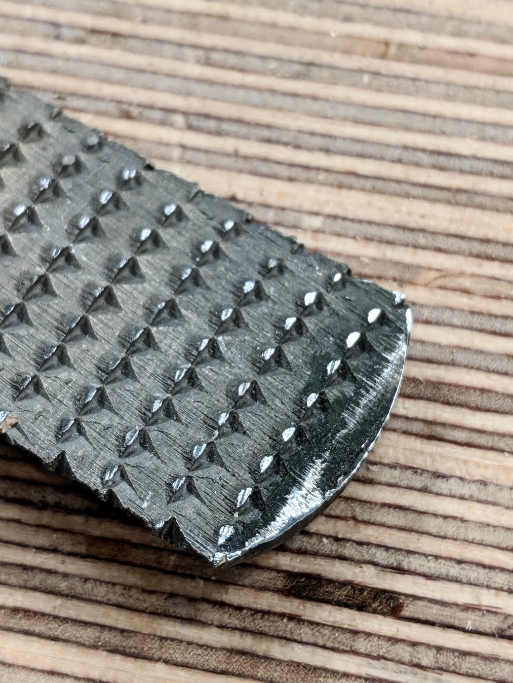 The teeth to one face are 10ppi and the opposite face is 20ppi. With the final strokes lightly taken you can develop close-to-finished surface that a file will readily perfect with two or three strokes.