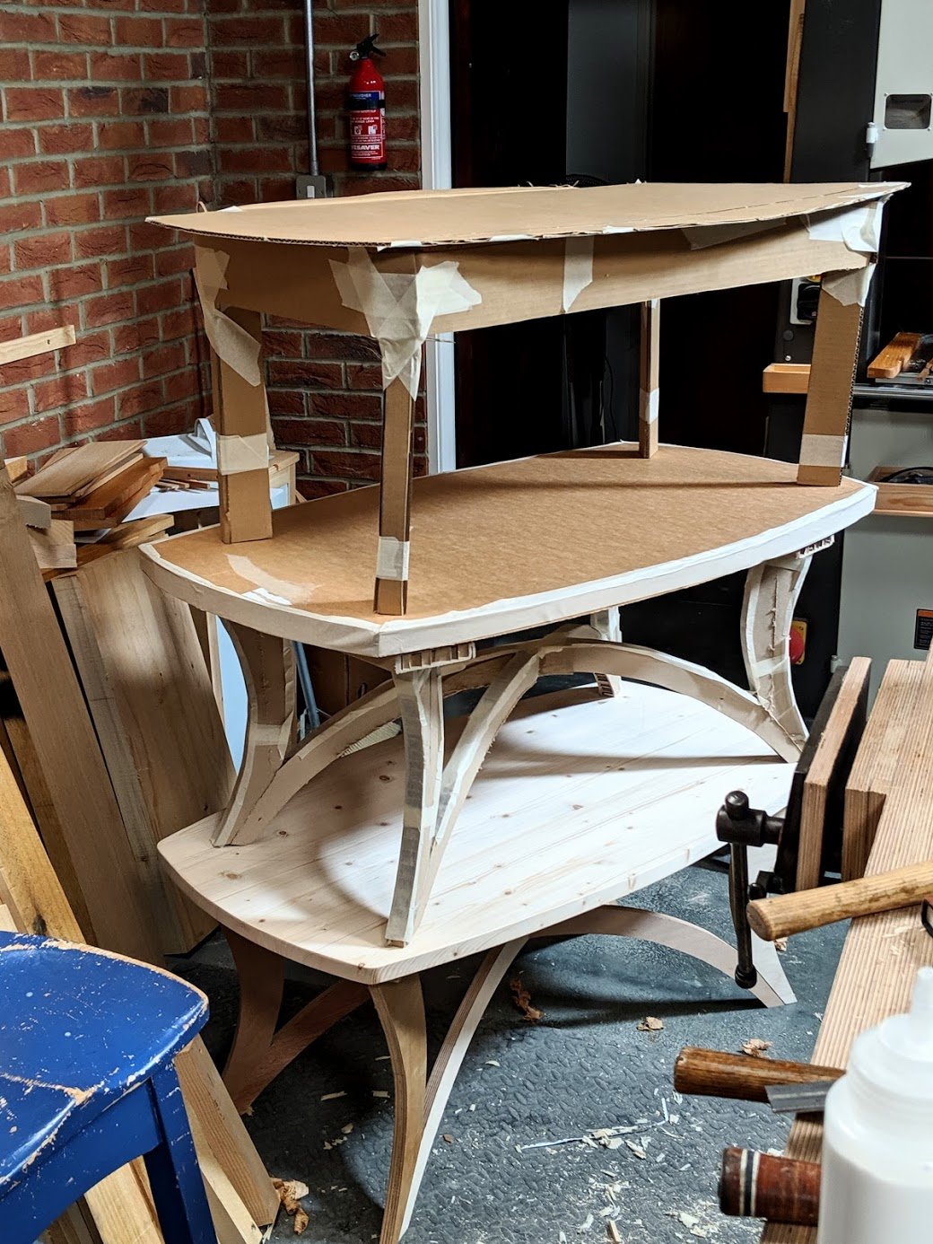 Shapes matter and nothing works better than three-dimensional blocks to block out space in length, depth and height, and these need be nothing more than taped-together folded cardboard legs taped again to thin sheets of corrugated card.