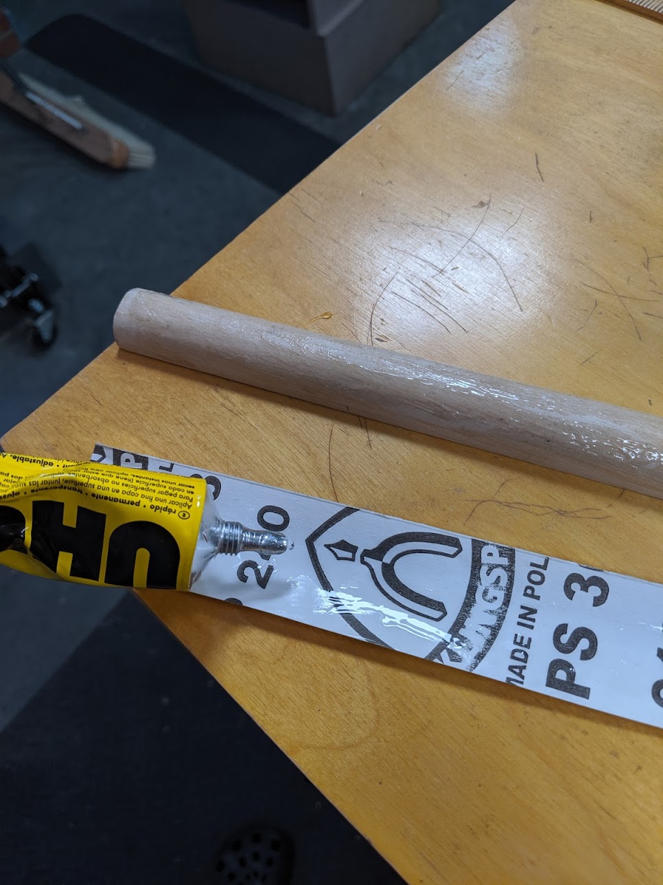 You can use double-sided tape on flat surfaces but curved surfaces seem to turn loose more readily and too soon. I use contact cement to stick down the abrasive regardless and so it stays glued. The property of contact cement is that you glue both surfaces and then wait long enough for both surfaces to become slightly tacky so almost dry. Make sure to align the surface to the paddle and press them firmly together. Add pressure if possible and the paddle is ready for use. The advantage of abrasive paddles over rasps and files is that the abrasive ones cut wood in any direction you move the surface over whereas the rasps and files have teeth that cut in one direction on the forward stroke. When the abrasive is too worn to cut, change the abrasive by pulling off the old.