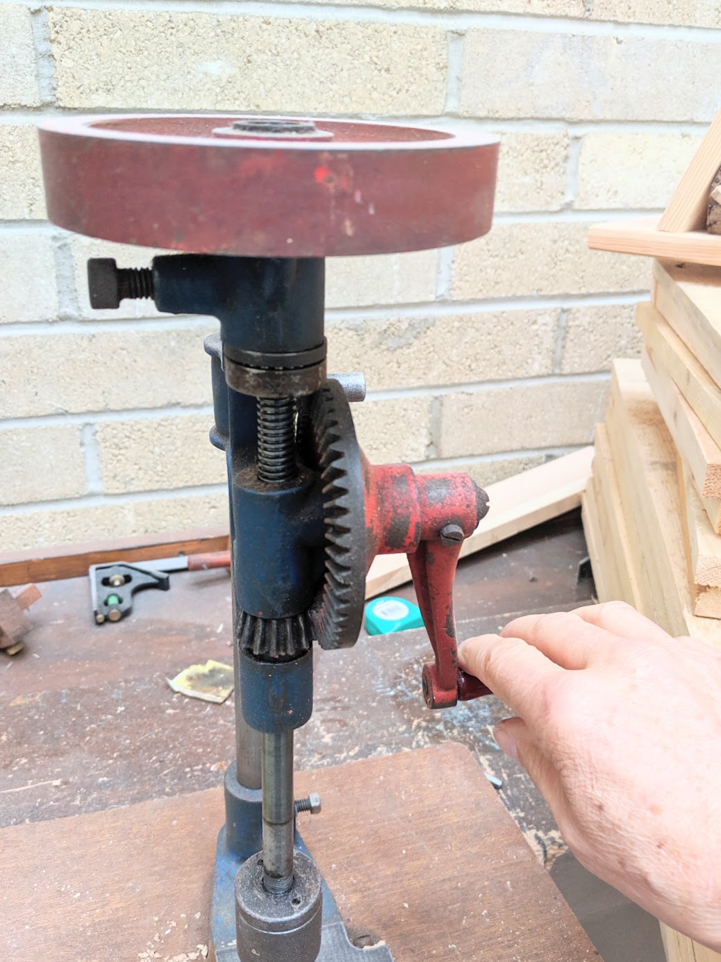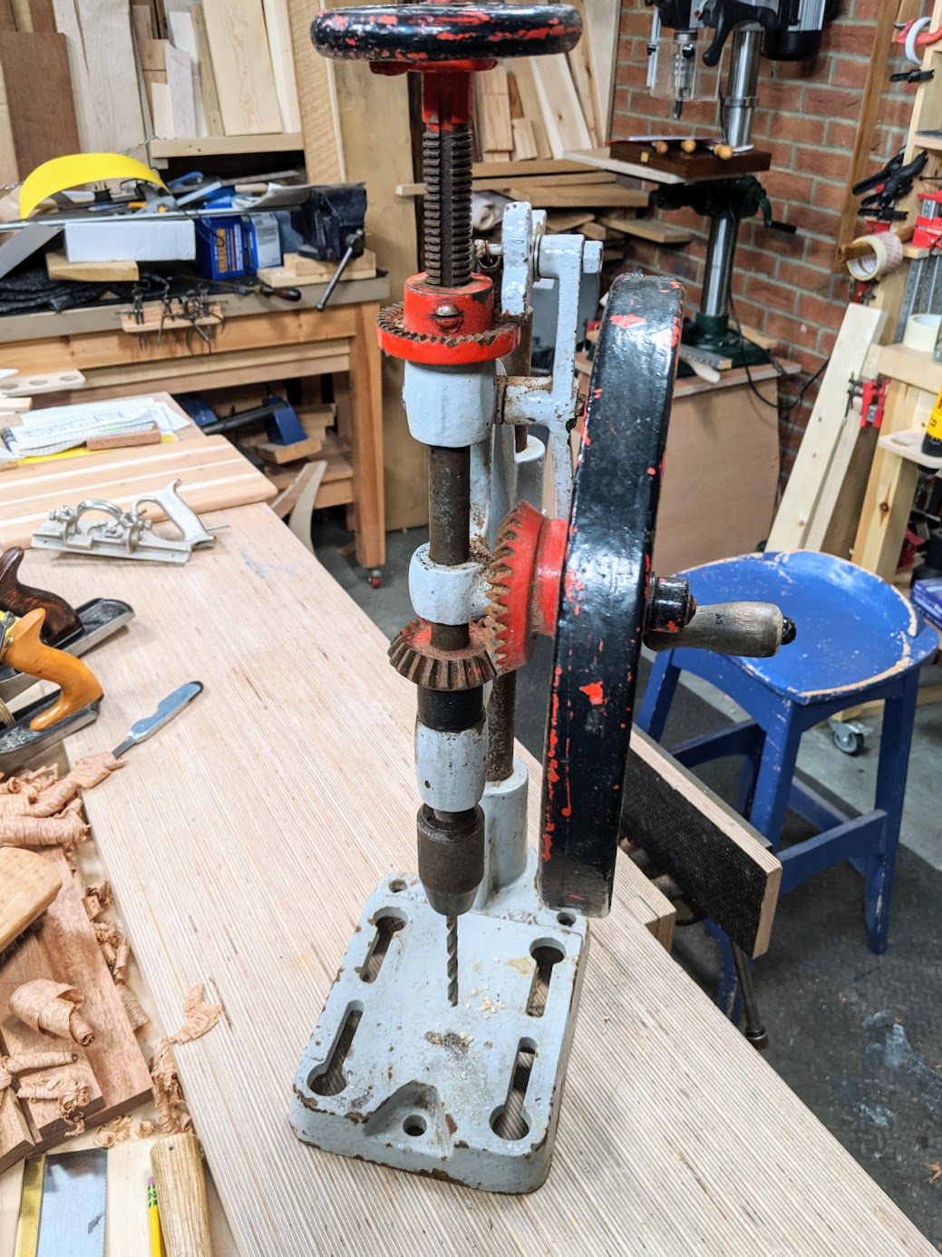 Drills like this mean you are working within and accepting of your human rhythms and not subject to super-fast spin, vibration and such that can be difficult for autists. It's important to bring everything within our ultimate control and something autists can have complete control of with regards to feed rate, drill speed etc. It's all too easy to say if that's all you need why not just use a hand brace, wheel brace or something like that? Well, often it is about having perfectly vertical holes passing through the wood too, and that is where we all might go a little awry.