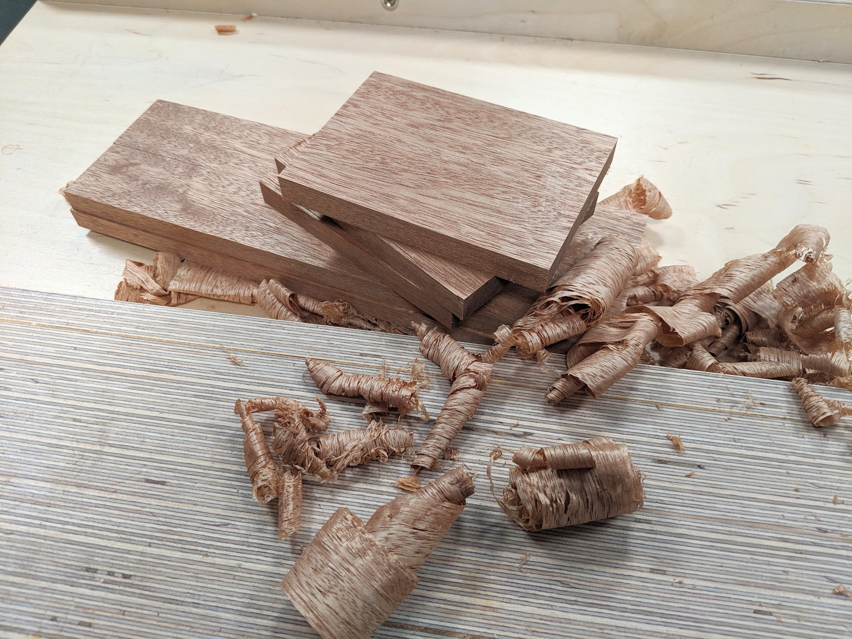 What I have enjoyed this morning is both using the bandsaw with a new blade installed and the slicing of the evenness to thickness. More than that, I see my power planer that could joint and thickness my 20 pieces in a matter of minutes but I chose, yes chose, to true and square and thickness my final stock using a bench plane. I enjoyed using the vernier to establish thickness and I have a very unique system for getting all the pieces to the same thickness without measuring every piece. I doubt anyone else uses my system but it works even within a thou'.