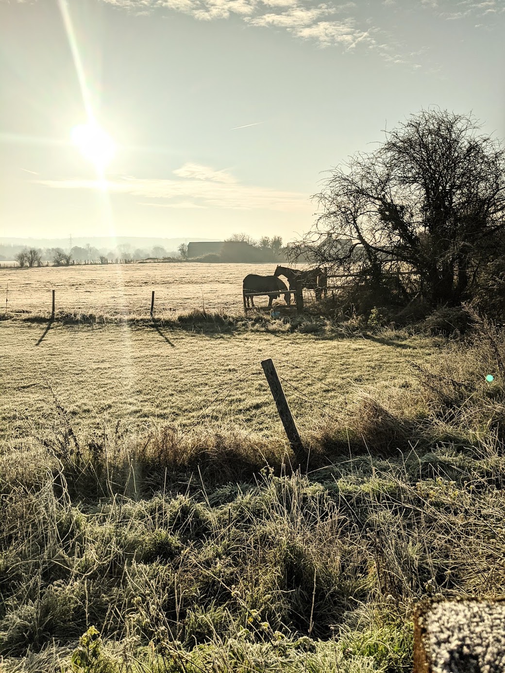 On my way in the darkness, pitch black, my bike lights pierce the overarching tunnel formed by the trees. It's a mile long, this stretch. In the dark, up ahead, I see two bobbing lights side by side that at first seem like car headlights but then I see that the lights bob alternately and then that a third light lower down joins the others. 'Ah, the two women runners and their dog.' I say to myself. It's 6am and I slow to make sure they know it's me. We shout our 'Hi's!' to one another as we pass...alongside their thank you's for me slowing down as I always do. It's a while to sunrise but the sun, lower than the horizon, casts a warm glow that bounces off the low clouds as I pass along. Turning the calm of the lake a mixed texture of pink and yellows. I'm pedalling at 13mph now and that will stay steady for the next four miles. When I get to work it will be daylight.