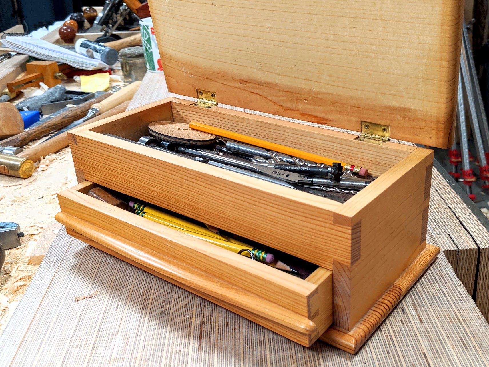 That said, I did find it really pleasing to work with using hand tools and the overall look was just as pleasing. I would encourage anyone to make this project if their aim is to keep developing their woodworking skills. It may not be as impressive as a four-poster bed or an entertainment centre, but it does look pretty nice on a desk or a workbench and it's especially useful for stuff that is difficult to house elsewhere without getting lost.