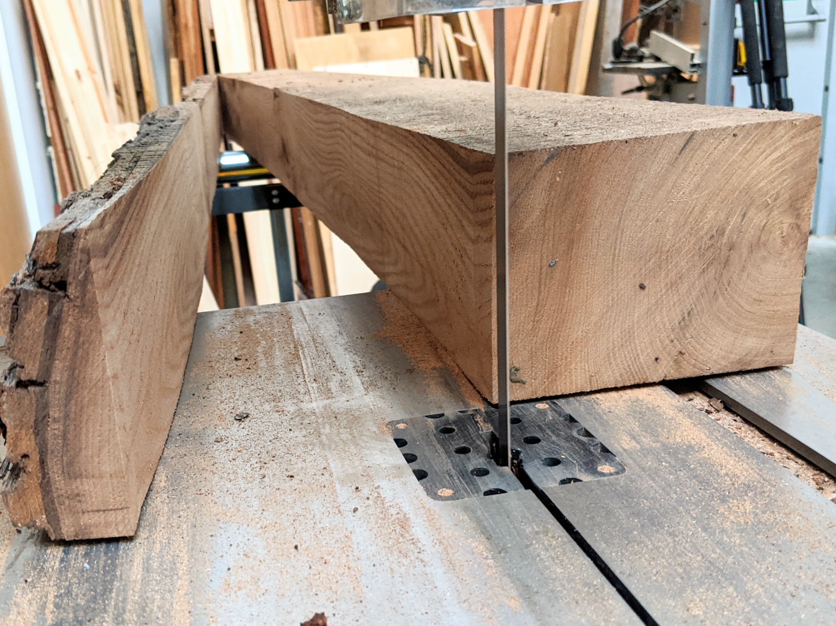 This week I will rip most of my stock from larger stock by resawing on the bandsaw. The sections of oak are some four-by-eight sections, quite heavy. This then is weight training, which involves stretches, pulls and pushes. I will of course plane all surfaces by hand with a hand plane before parallel rips take place and by this, I return to the same stretches, pulls and pushes but with each level, there is a diminishing demand. As the smaller pieces unite into jointed frames the work goes from lightweight work to heavier frames. This then results in heavier maneuvering of materials but in the creating, of course, I have hammer blows, plane strokes and then too saw strokes because I do use handsaws of different types for all of my hand joinery.