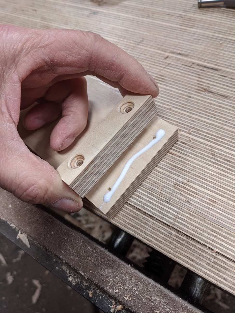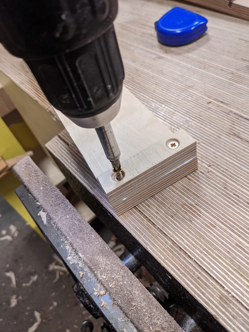 Pre-drill the stop block with 3/16" holes 3/4" in from the ends and countersink.