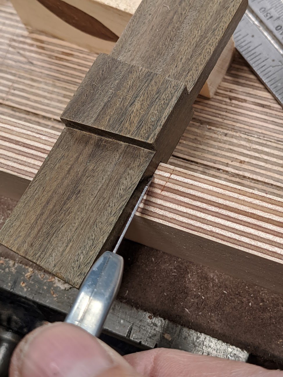 Use a dovetail guide for the 1:7 ratio angle, or use a sliding bevel.