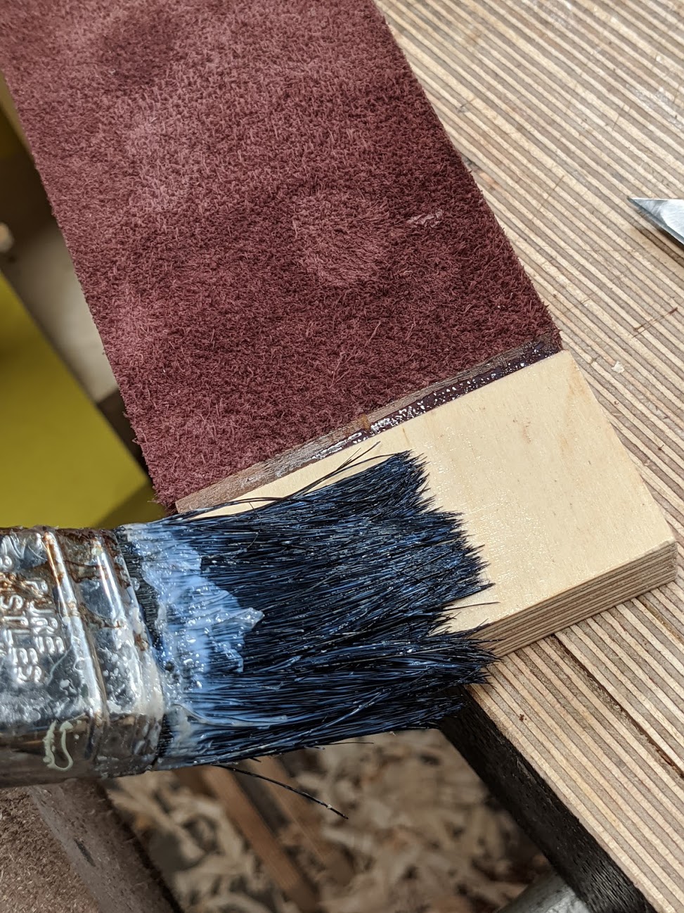 I have always made strop making simple by using double-sided tape to fix the leather to the strop block. It works fine but with the pressure of stopping long term the leather starts to loosen at the corners and it does get gouged from time to time which results in bumps in the surface.