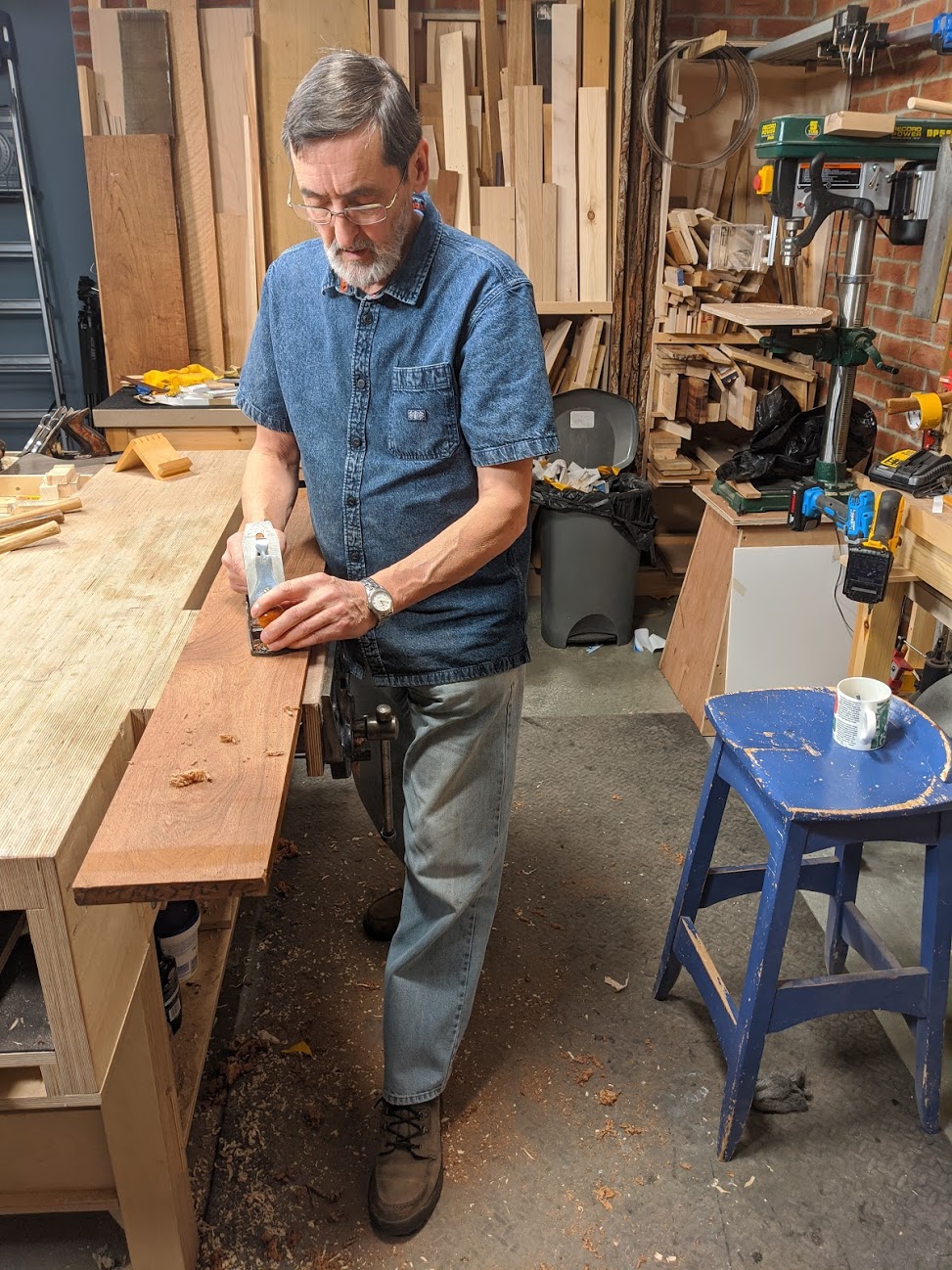 You can't ask a machine-only woodworker or one who occasionally allows a little plane work or chisel chopping here and there for any kind of knowing advice unless they did have a background of substantial handwork using hand tools to work with. It's more likely that they are primarily working in more an assembly mode most of the time. Low benches work great for routing and Skilsaw work, jigsaws and such, and then too, especially, parts assembly, belt sanding and so on. In fact, I suspect that that is where bench heights mostly come from these days. For hand toolists though, the rigours of full-on planing, sawing, mortise chopping and then and only then the assembly of components place very different demands on the user. For our work, we must often wrestle, push, sideways twist, shove and pull with great force in ways that machinists never need to and we can do that for long periods in a day. Take the efforts of flattening a five-foot plank of rough-sawn mesquite or oak to twist-free levels and smoothness. Now that's a serious business engaging a mass of upper body effort from braced leg positioning.