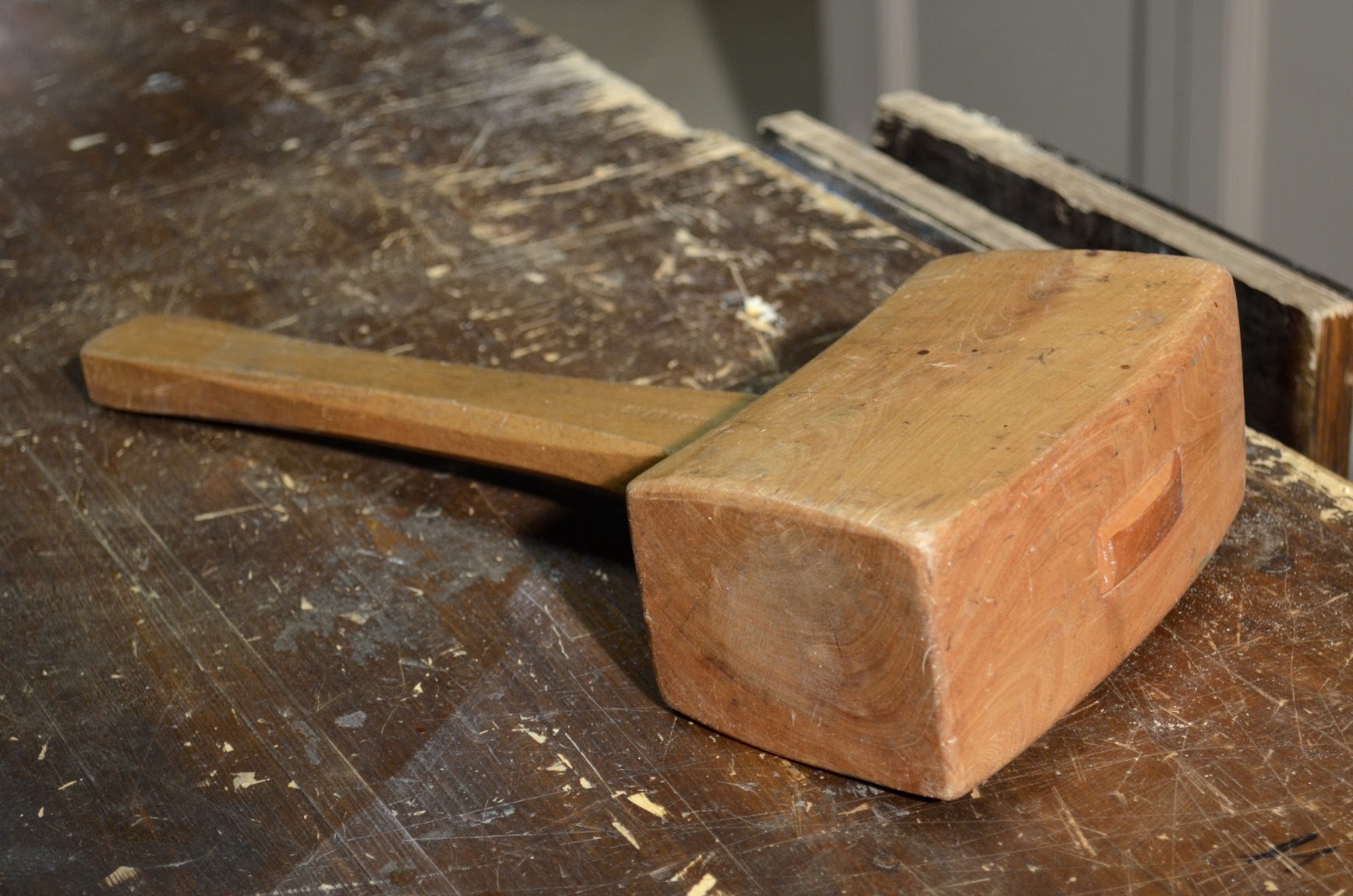 He went on, "The best place for mallet wood is the crotch of a tree because the wood is much denser and more interlocking, you see. Live-knotty areas are the same because of course that area is the root of the branches and wherever that occurs you can guarantee the wood will never split because the grain has no straightness to it and the interchangeable grain direction inside means difficulty to work but longevity to the piece. This is especially so for a tool like a mallet or a chisel handle.