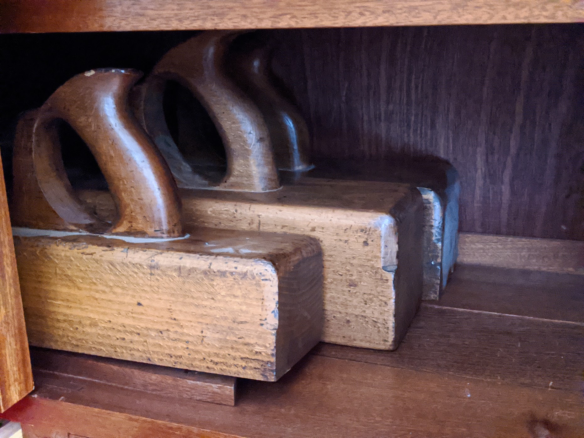 The very finest tools made then were all hand-filed, hand-planed, hand-cast, and hand-shaped. They were the extension of the men who made them and reflected their integrity. It is an unfortunate thing that in today's age the official guidance ruling commercial entities is that if the wood is handed into a machine to be cut by that machine by human hands it can be deemed 'hand made". You and I know that it is not and that the spirit of declaring something to be hand made is that hands and skills guided hand tools and in some cases hand-held machines to make them. And I am not saying that there's is no skilled machine work either, of course there is. Much machine work is highly skilled as is the programming that takes technical knowledge to send the machine onto the wood or the wood onto the cutter head automatically. But we should recognise and admit that much machine work takes the hands off the materials so that human touch and skill is taken off the table. I am simply saying we must look at things to see just what skill is. If I push a power-router along an edge of wood to steer it and keep it to the fence then my main task is to keep it moving and to prevent even the slightest tilt that would otherwise result in a burn mark or a step-down. It's a skilless task. If I take a moulding plane to do the same work it takes many types of skills to set it up and make it work and then too the skill to achieve the work itself. It is not just different in part, but different in the whole and much more a high-demand task altogether.