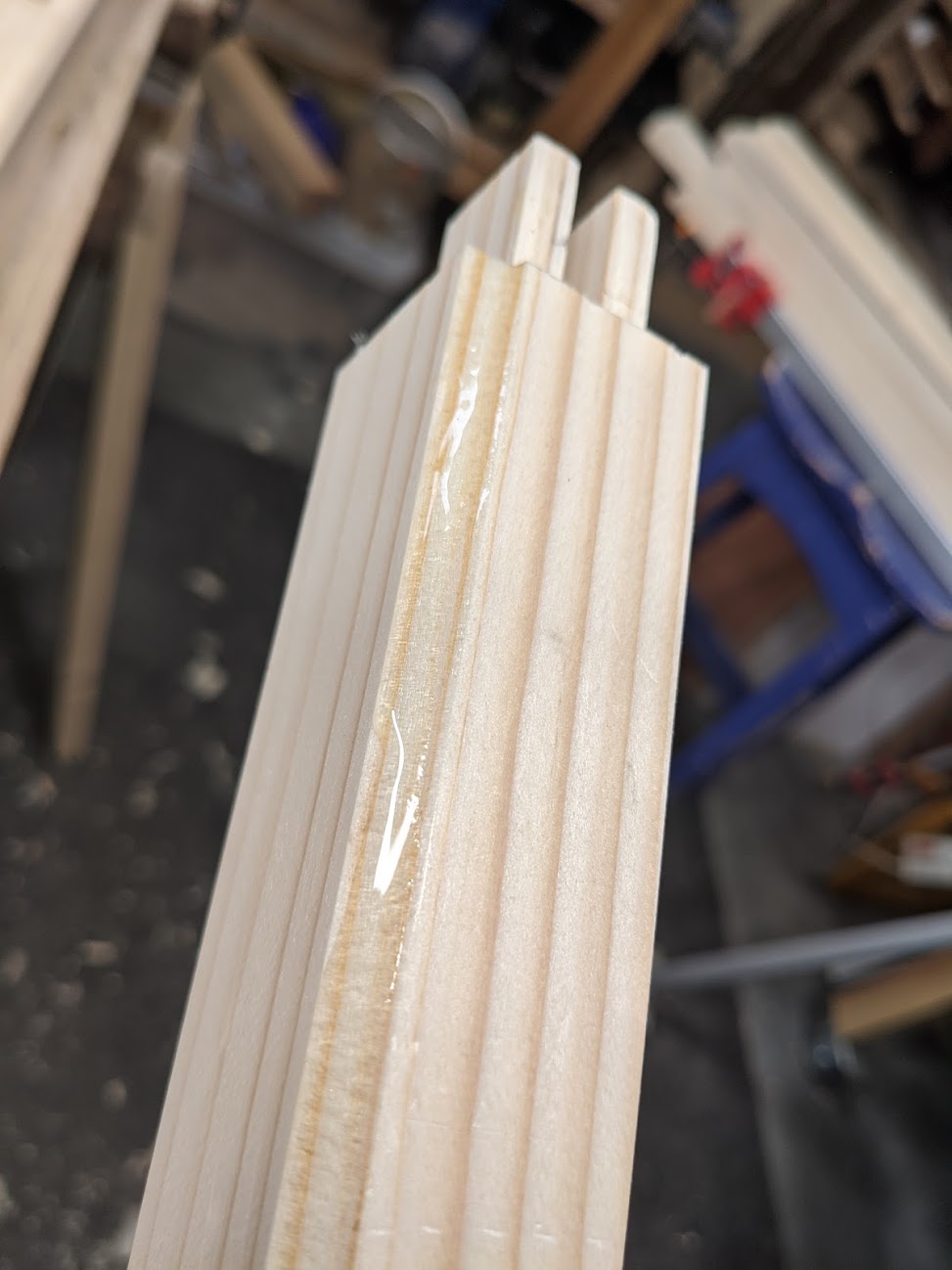 Then I ripped down a strip from an offcut of the same wood and used superglue and an accelerator to bond the strip to the bevel.