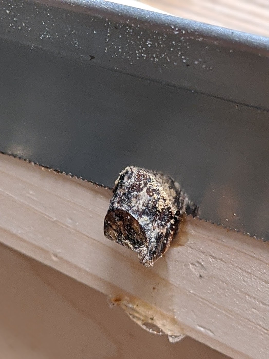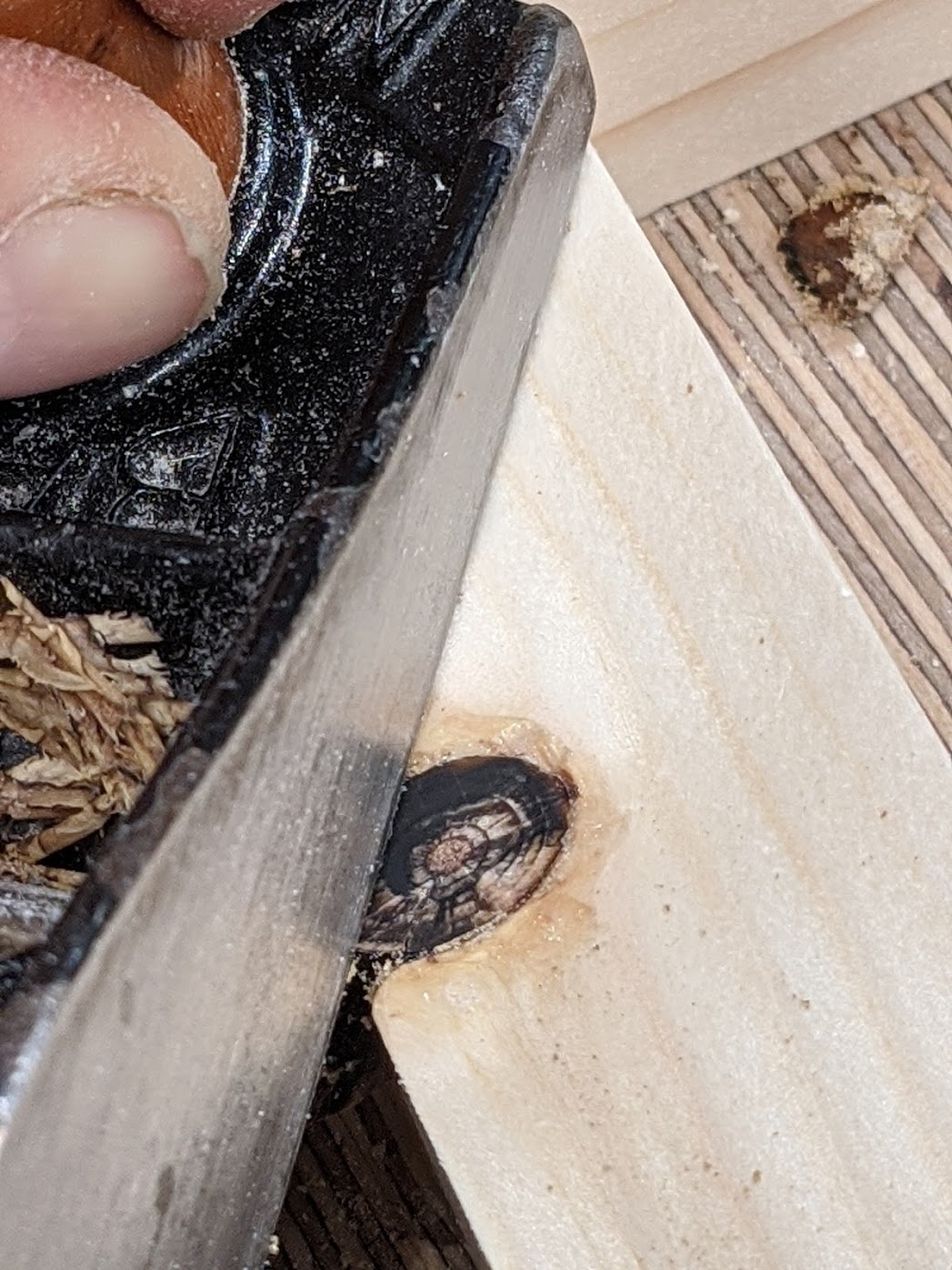 I did the same to the new knot on the adjacent face and sawed it flush...