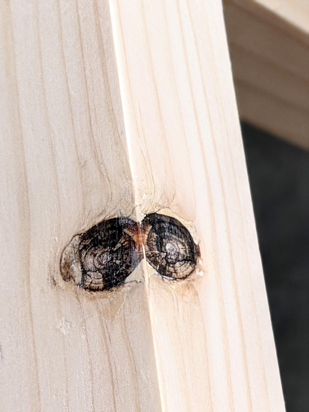 My shojis came out very nicely but for a single knot on a visible outer corner. The knots in place are part of the wood but when they do go AWOL (absent without leave) it looks ugly. Here is what I was facing. To let in a piece of wood in an unpainted part would stand out as much as the missing knot.