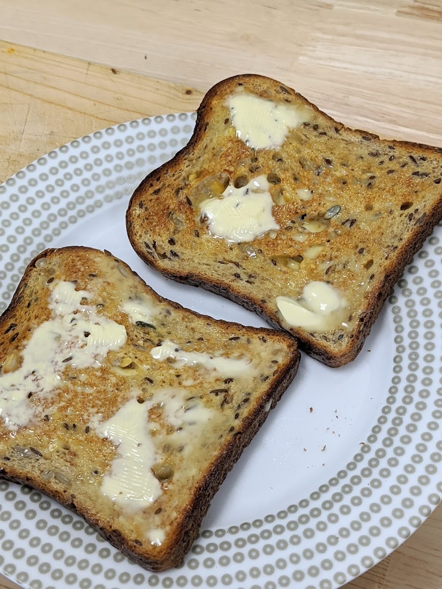 You might want to add a couple of slices of toast. If you are a diabetic this is a low carb breakfast but there is enough carbs in the whole meal to keep me going for five hours of good hard manual labour. I use a bread called Livlife seriously seeded bread which has 3.5 carbs per slice. the slices are thin and small but they are punchy and I like them very much.