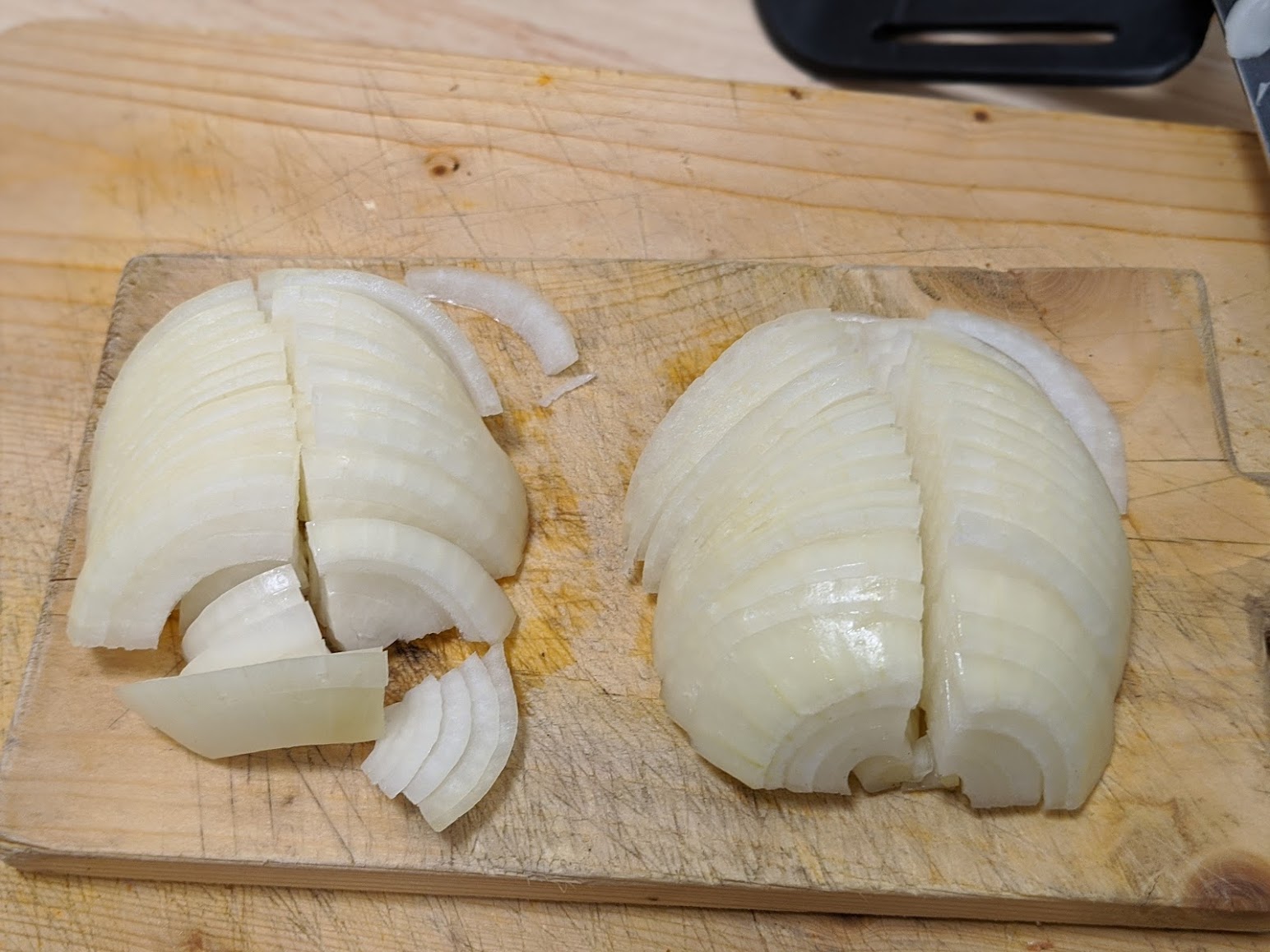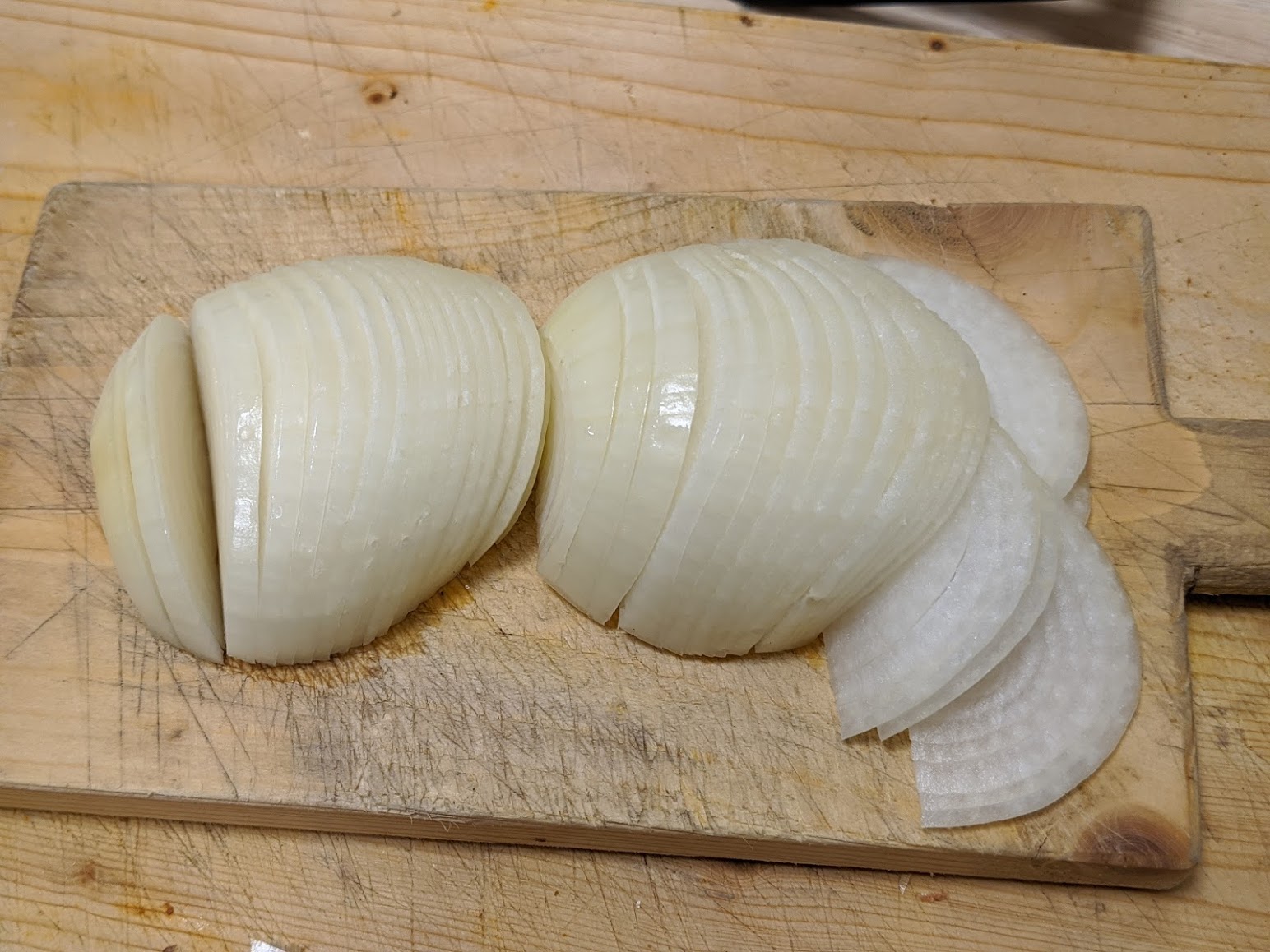 While the oil is heating through, prep your onion by slicing thin...