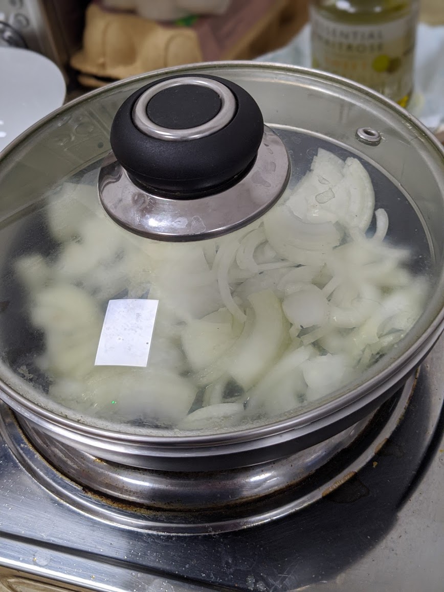 Add the onion to the stir fry olive oil and cover.