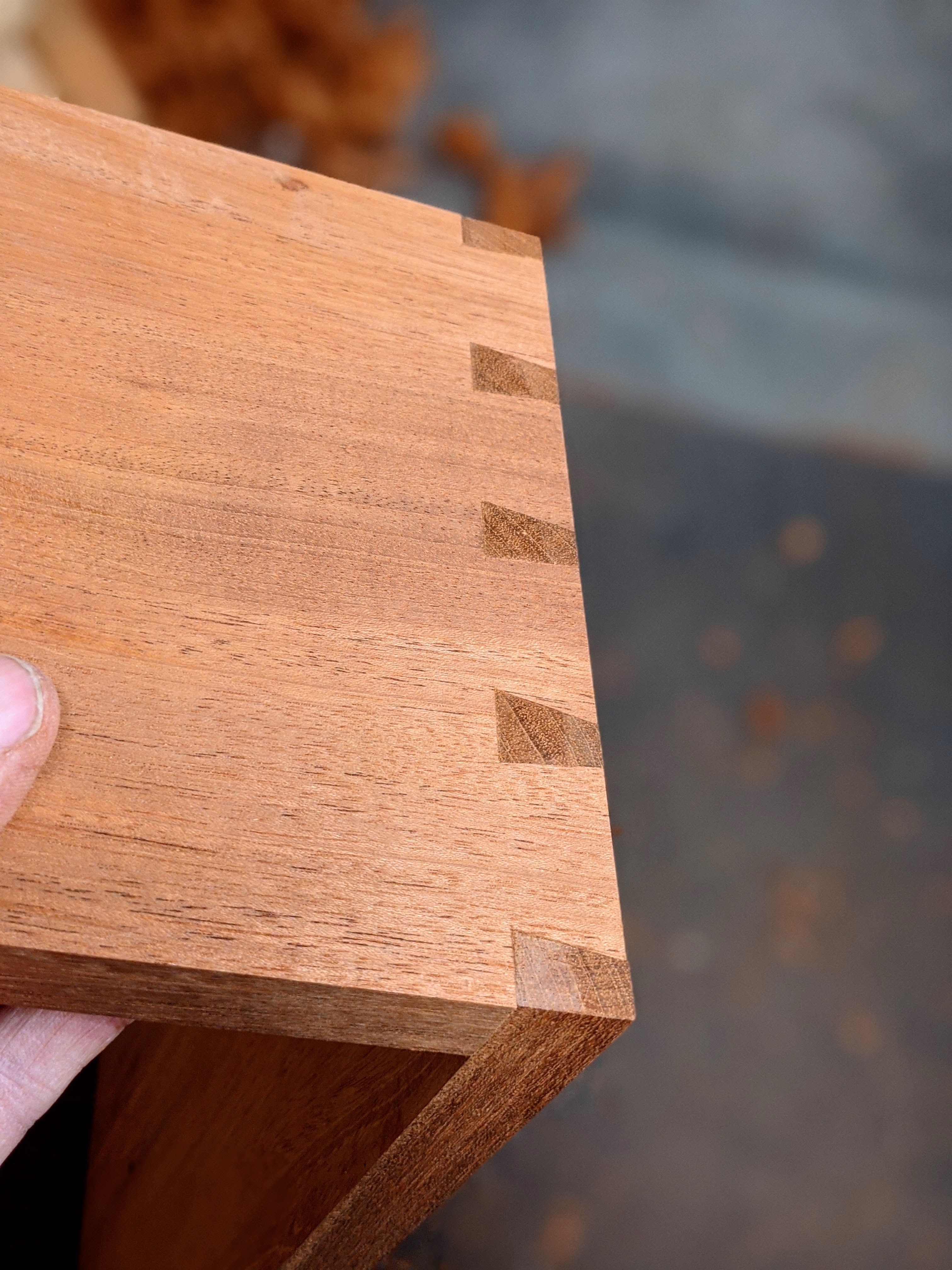 I told you the story about the man who ended up with gappy mitres to his architraves. How George helped me to see the true picture. Here is the story if you missed it. Well, I recalled this when I saw this gap in a hinge on the underside of an 1800s drop-leaf table. How easy it is to consider another man's shoddiness 150 years beyond his death. The deep, impreciseness of his knife marks in the wood, the shim at the end of the recess. I have heard men woodworking for a hobby say that their dovetails were better than ancient craftsmen because there were gaps, imprecise angles and the saw cuts ran past the depth line. To their unswerving arrogance of comparisons, I would ask how long they'd taken to cut their dovetails. To that, they might say, "Oh, I'm a perfectionist so I took my time. Half a day!" Then I would say that the work of past artisans would disallow such luxury because for this work they would be allowed only one day to complete six drawers four to five inches wide with four tails to each corner -- 64 single dovetails. There were a dozen or more joiners ready to fill this man's shoes.