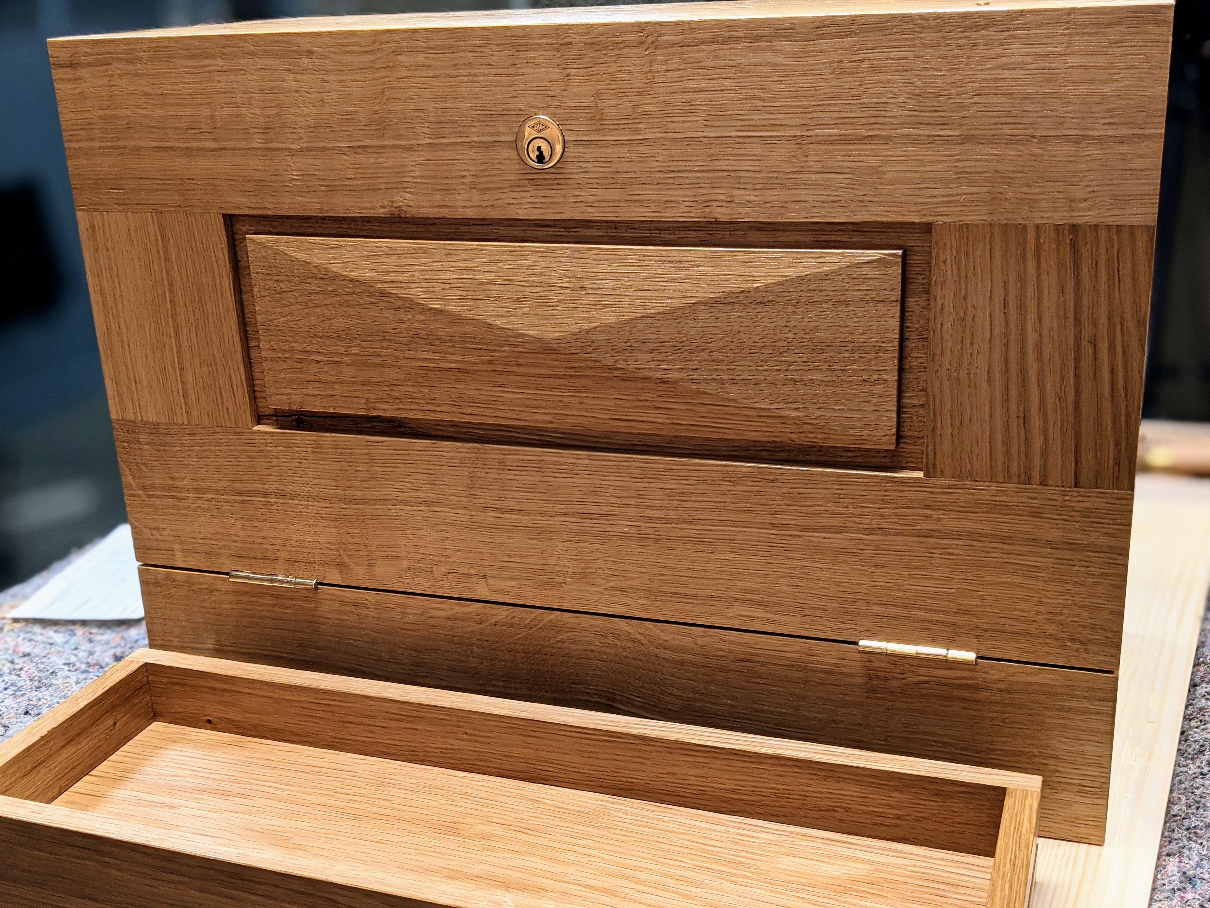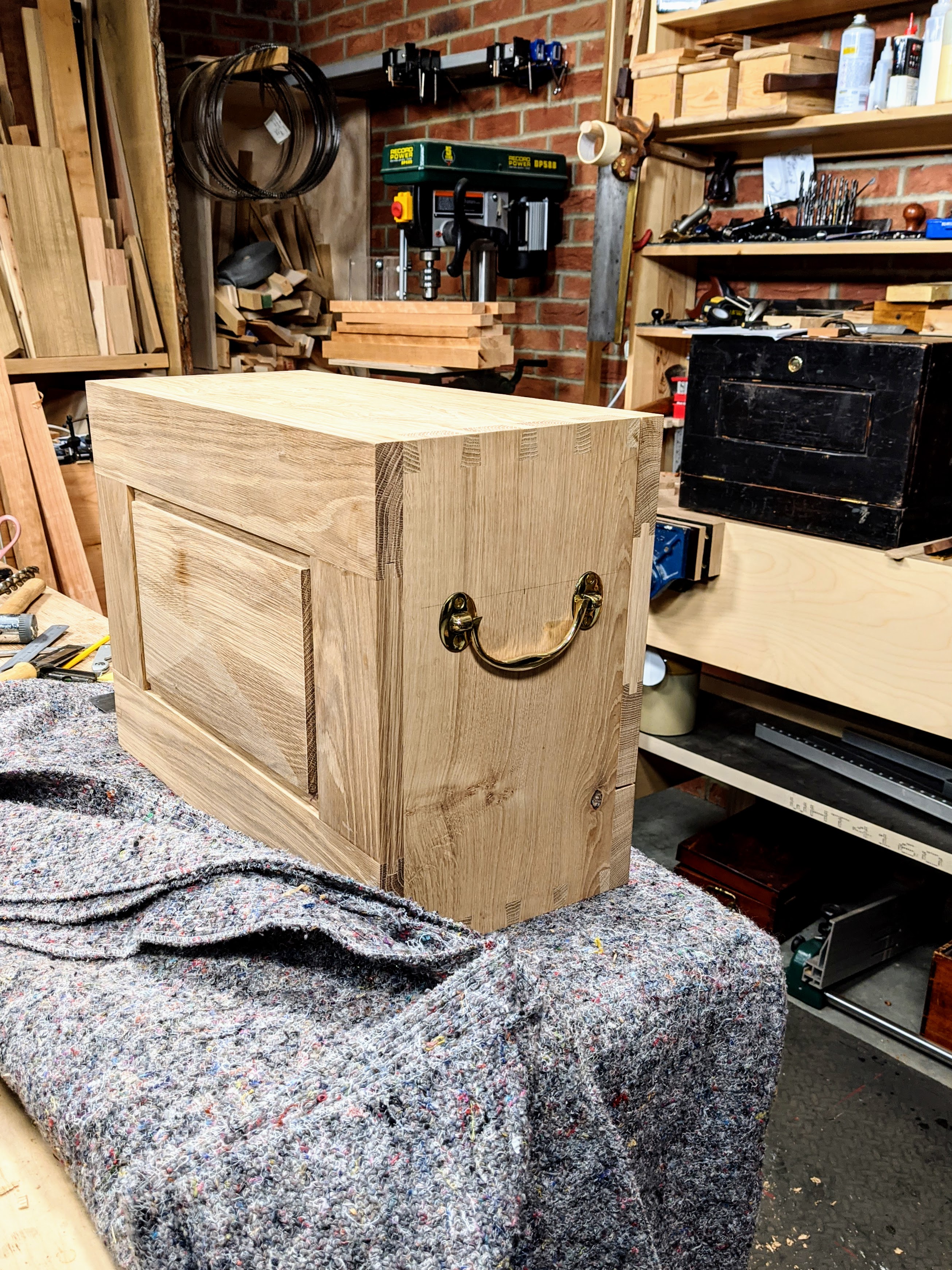 I enjoyed closing out the series of videos yesterday. Today I will reinstall the hardware and wax the finish. My journey into the past was very enjoyable and I now must decide what to do with two more toolboxes I have no specific need for. Perhaps I will load the oak version with some of my special tools and enjoy that. Because of the pandemic I now have set aside an area above the workshop for me to enjoy cooking and a little rest in my lengthened days. I have several pieces I made in the previous years in use there. The toolbox will be a nice fit I think.