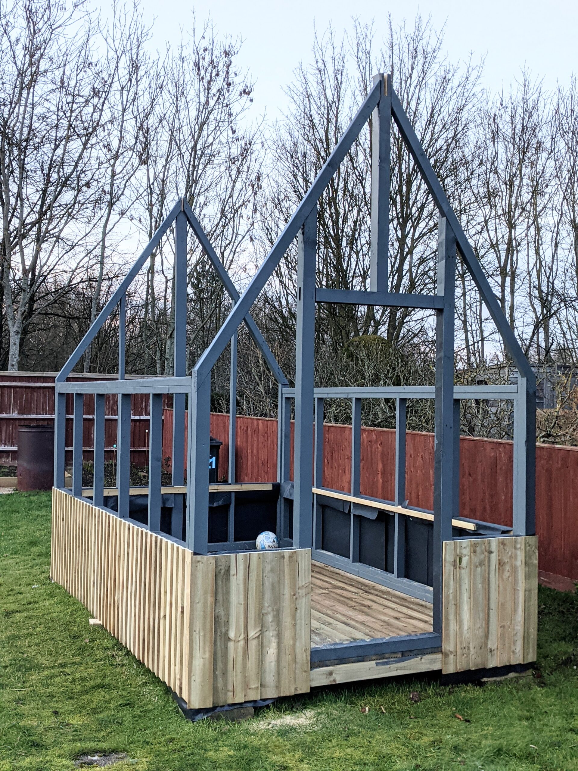 In this closing point of the year, knowing my greenhouse is still as yet unfinished, I spent some of my Christmas holiday moving it forward. I have ordered the glazing panels and they will be here next week. The roof glazing spars are bird's-mouthed angle cut and ready to install. I just lack the four-meter ridge board to form the roof and tie in the end frames.