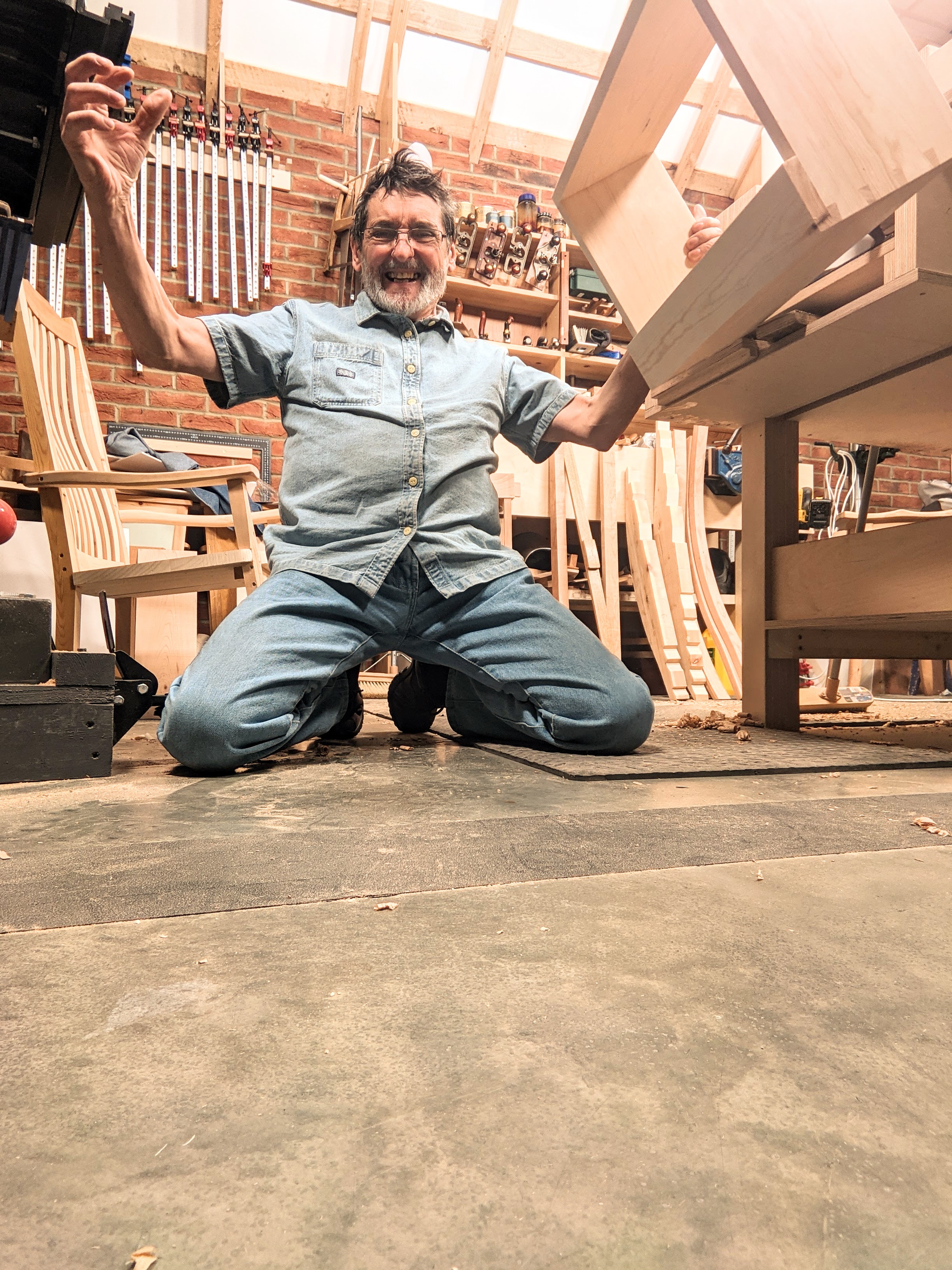 Well, of course, we don't do the sports thing because we're not marked out as Olympians. A dovetail locks two and then four pieces of wood together and we close out the light and walk home tired. A rocking chair nudged on the way to the door rocks gently back and forth at our departing. But then I did chuckle to myself as I imagined how it would be if people in general, equally skilled workers of every kind throughout the world, body-locked on bent and stiffened knees to roar every time they scored in an achievement. I watched the NASA scientists and engineers as they watched their landing of Perseverance on Mars a few days ago. There was something about the unique experience in a special kind of teamwork that created possibility. I have worked in teams where it took many more than just me to make something come together. But then too there is the quiet constraint in a shed at the end of someone's garden where a man and a woman twixt 16 and 90 are silenced for just a few minutes by what they achieved on their own home turf using just a handful of tools and their own two hands. There was no passing of the ball from first one and then another, no crowd-cheering applause spurring them over the line, yet in the relative harmony of a shed at the bottom of the garden or the quiet corner of the garage something stirred inside a heart that might even make a maker allow a moment of emotion to take its rightful place.