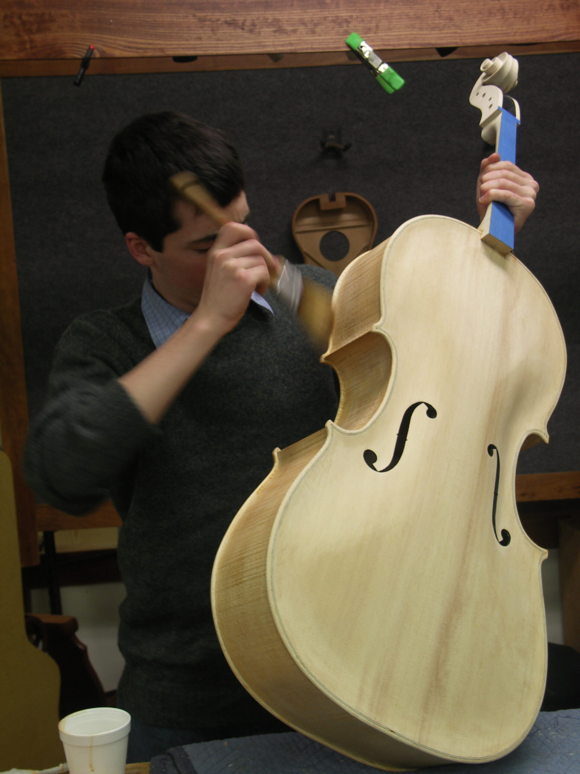 Bit by bit and chip by chip your skills improve and the piece you are carving becomes something quite beautiful. But then you begin to see what I said a little earlier, that it less important to sell what you make and earn your living by your hands than it is to allow yourself to be ambushed for a short season and be snatched from the mundane works of life to enter a new and unknown world of making. Most courses can be had online these days for free. Hands-on courses can be expensive and sometimes unnecessary because ven one-on-one cannot give you the skill you get from rote repetition and taking the steps to make and learn from. Most woodworking is about learning about the tools you use, how to use them and then the wood you will come to know. I recall making my first cello from scratch with my son Joseph. We had a book and no one to tell us or teach us what to do. I was amazed at how unfalteringly we worked to make that instrument. How the woodworking tools I had used throughout my life I could readily adapt and adopt for the work in the cello. Apart from one or two specialist tools, we did the whole with ordinary tools that we had. We decided that the purfling tool seemed less controllable and we designed one that far surpassed the one we thought we needed. So too that special knife for carving the blocking. and such. Again, we designed one and made one. It created a superb finish inside where no one could ever see the work of our hands.