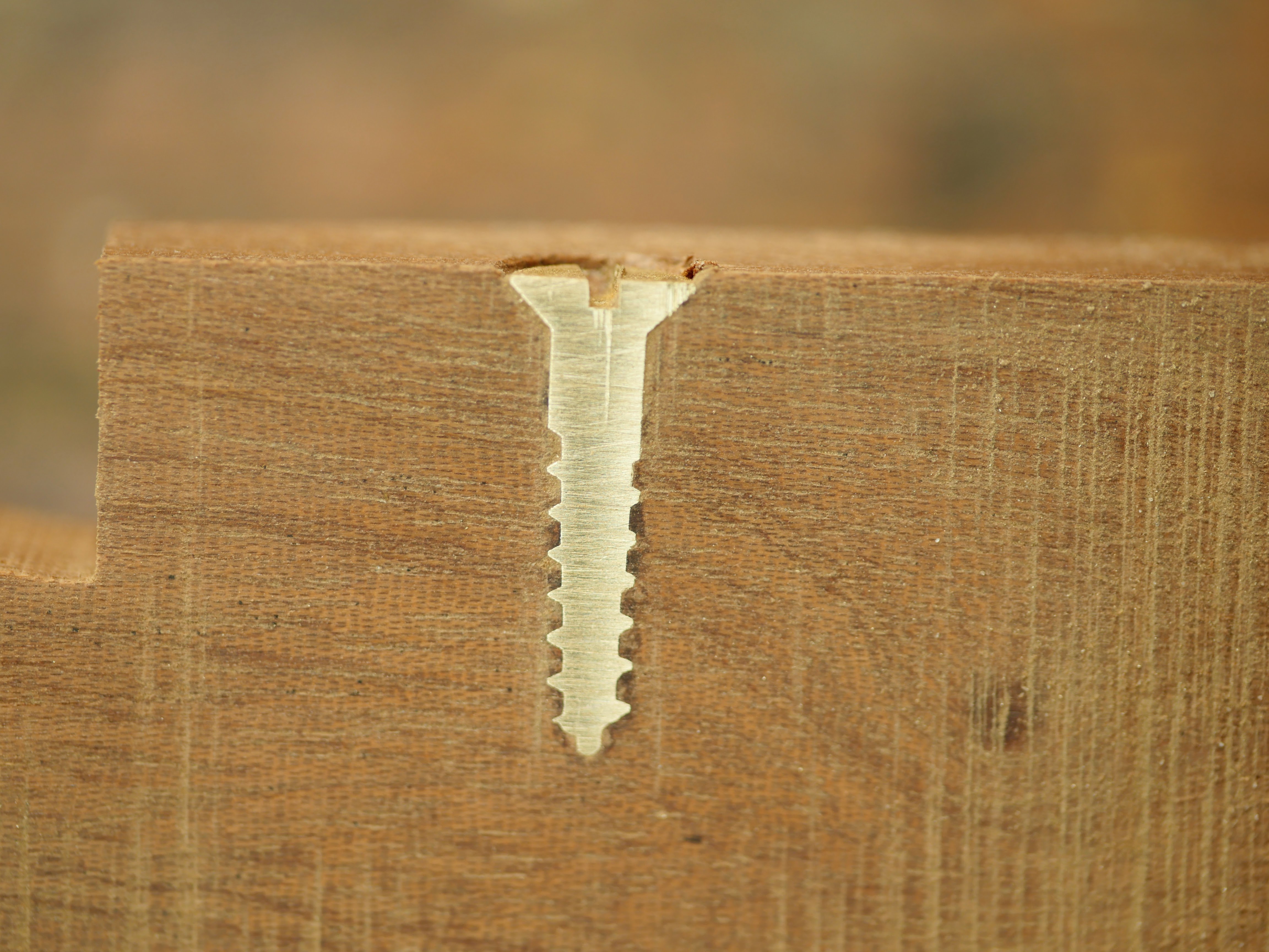 Not too many people in woodworking use slot- or flat-head screws these days. It is a strange thing but when the screws are visible, slot-heads remain unsurpassed for looks. I use mostly brass screws on all brass fittings, but when a wood screw is necessary say for dismantling in a piece of work, I will look to a slot-headed version. An instance in mind also is the black-japanned round or dome-headed screws used on gate and door furniture outdoors. Somehow, the cross-headed screws never seem quite right. Ultimately, my opinion will die with me, I know that, but until then I will always have the beautiful advantage of lining up that slot with the perpendicular or horizontal axis of whatever is being fixed.