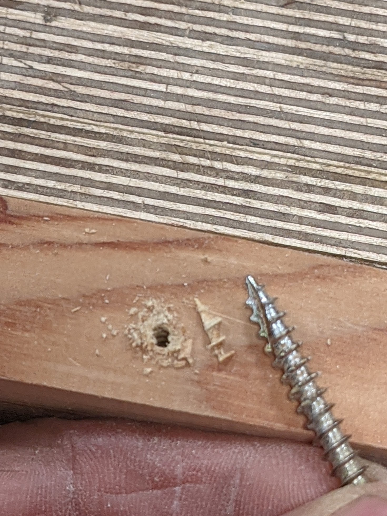 I am never sure if we altogether understand self-drilling screws, the need for pilot holes, and just what's happening at the tip of the screw with its ultra-pointed, missile-shaped point. In industry, carpentry-level assembly and such, they are indispensable and an odd split in a deck board will ultimately add to the dozen or so other shrinkage and expansion cracks anyway, regardless of the screws. But it is in benchwork and finer work where the ultimate cost can ruin our work. Oh, and I know some carpenters who go to the same extremes I do to prevent or lower the risk of a board splitting because of a wrongly driven screw too. This weekend I was driving screws in the stops of my greenhouse glazing panels and a few other places too. All of my holes were predrilled. I do this on almost all of my work. I have experimented to ascertain exactly what happens within the wood. Predrilling is an imperative step for me.