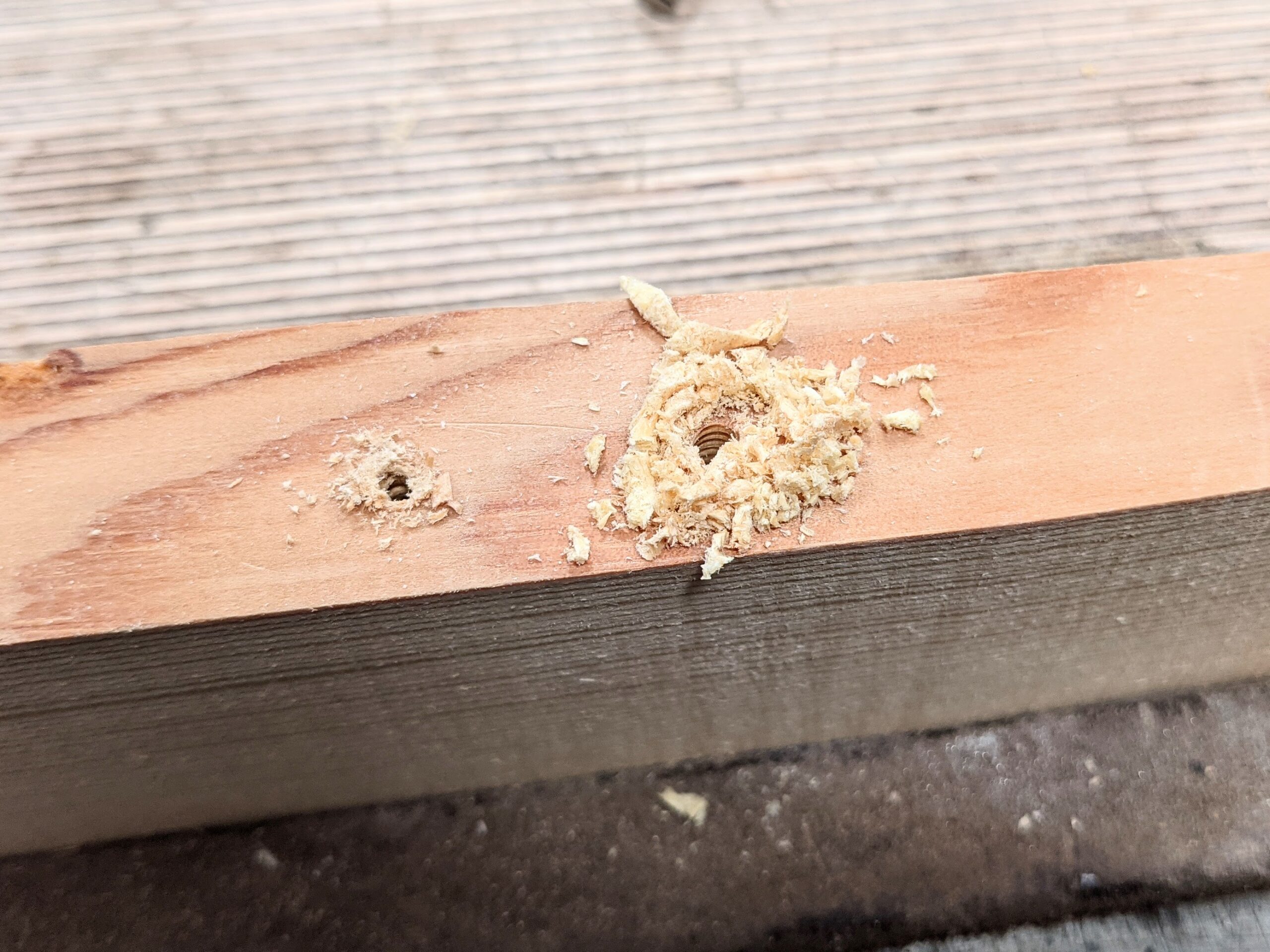 A point without pun worth making is the reality that it is not just the point part of the screw that eases access of the screw into the wood. This is only really a start point that eases the screw in, yes, but then the thread takes over with heavy force from the drill to pull the screw and the shank or main body of the screw into the wood. The sharpened and refined point with its reaming capacity does not drill away the wood beyond the first percentage of the length. The screw itself cannot remove any wood because the shank of the screw does not have the flutes that twist drill bits do, so at best what the self-drilling screw does is fracture the fibres. The wood remains within the threads of the screw and because of this, the wood is very likely to split at some point. This is especially problematic with resilient hard and dense-grained hardwoods. The denser the wood, hardwood, or softwood, the more likely the split. I think that it is important to note here that it will always be best to drill a stepped hole of lesser diameter to ease the circumferential pressure caused by the screw's reduced shank even though the screw shank is smaller in diameter.