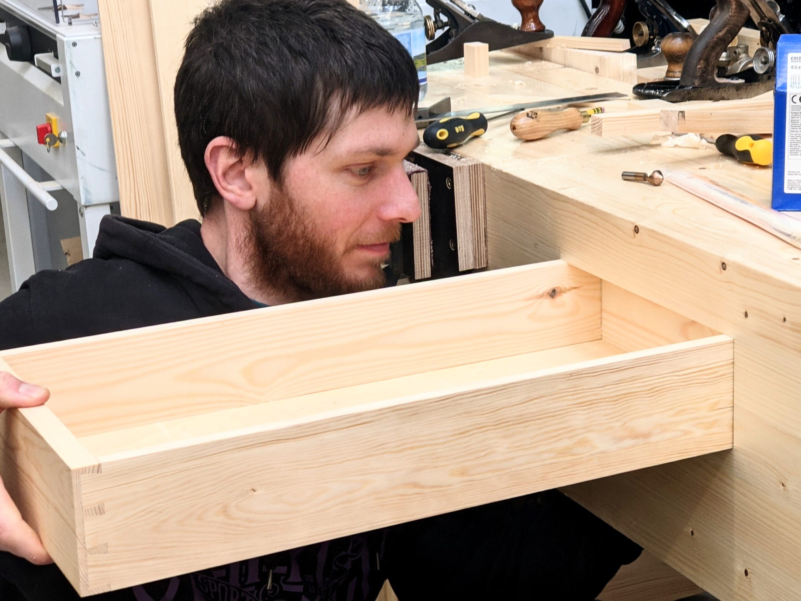 He also decided to add an apron drawer and fitted that this week too. Establishing your space is always essential so that tools placed suit you and you alone. It is a rare thing to find such skills become owned in this day and age I think.