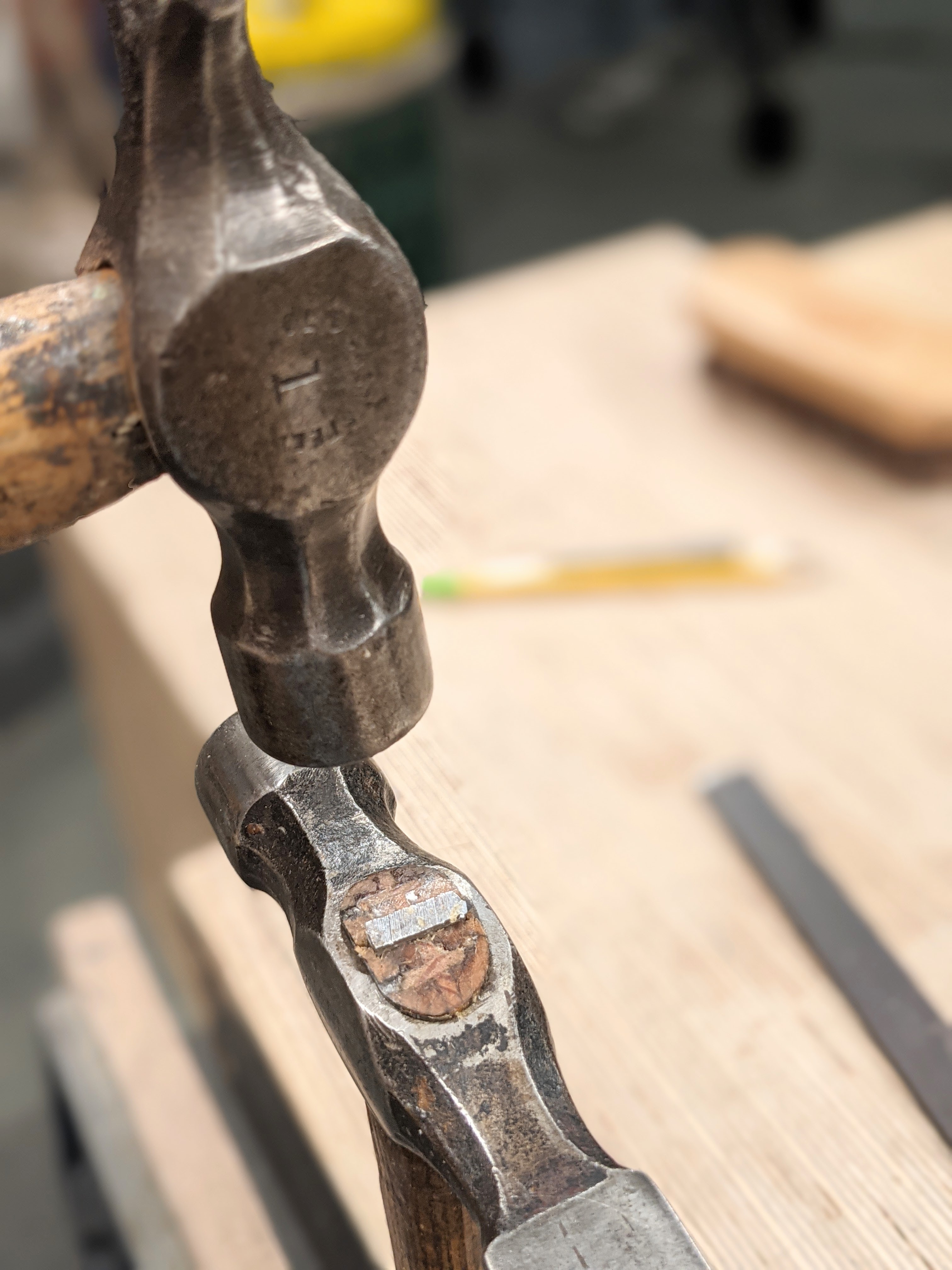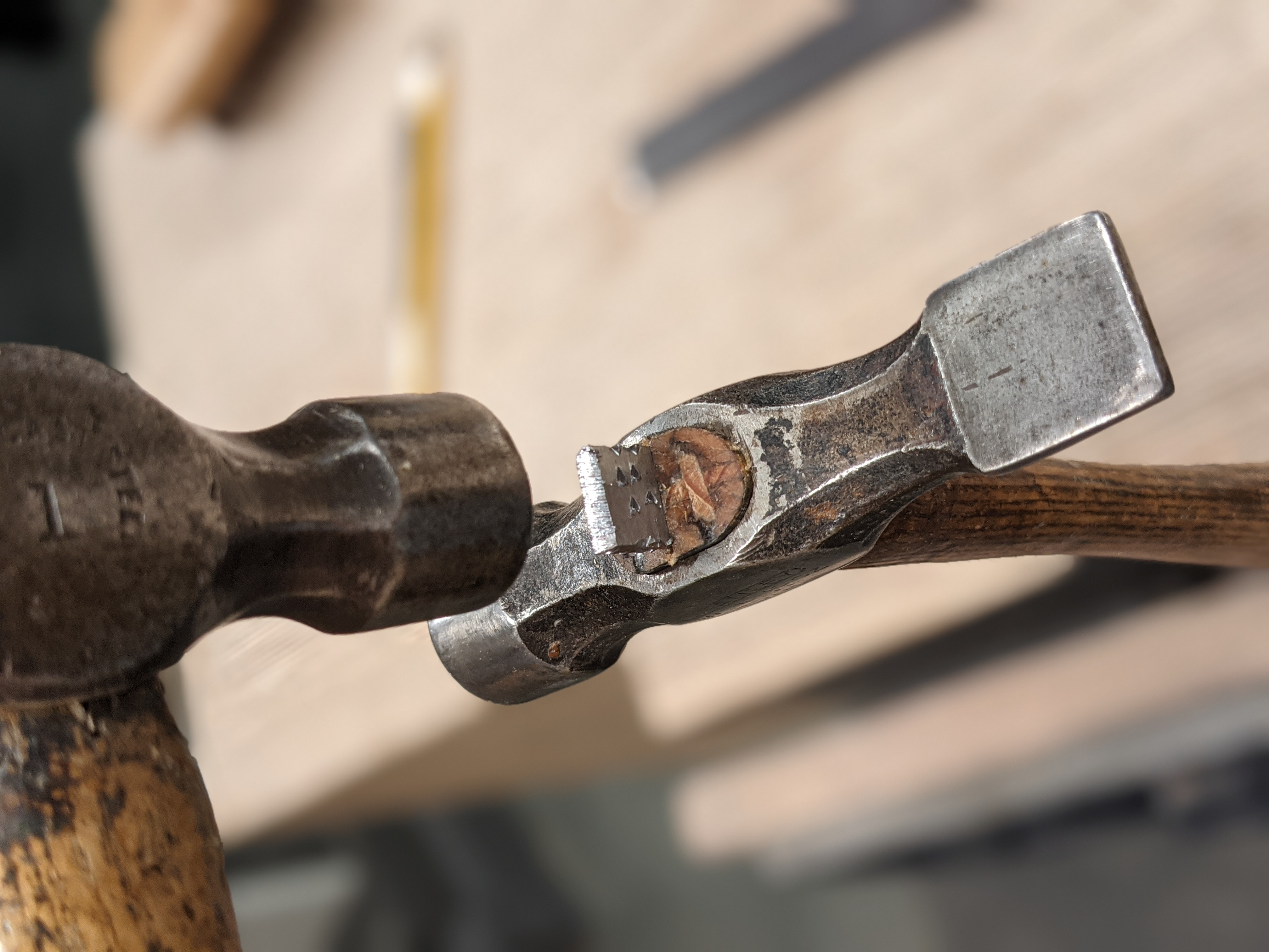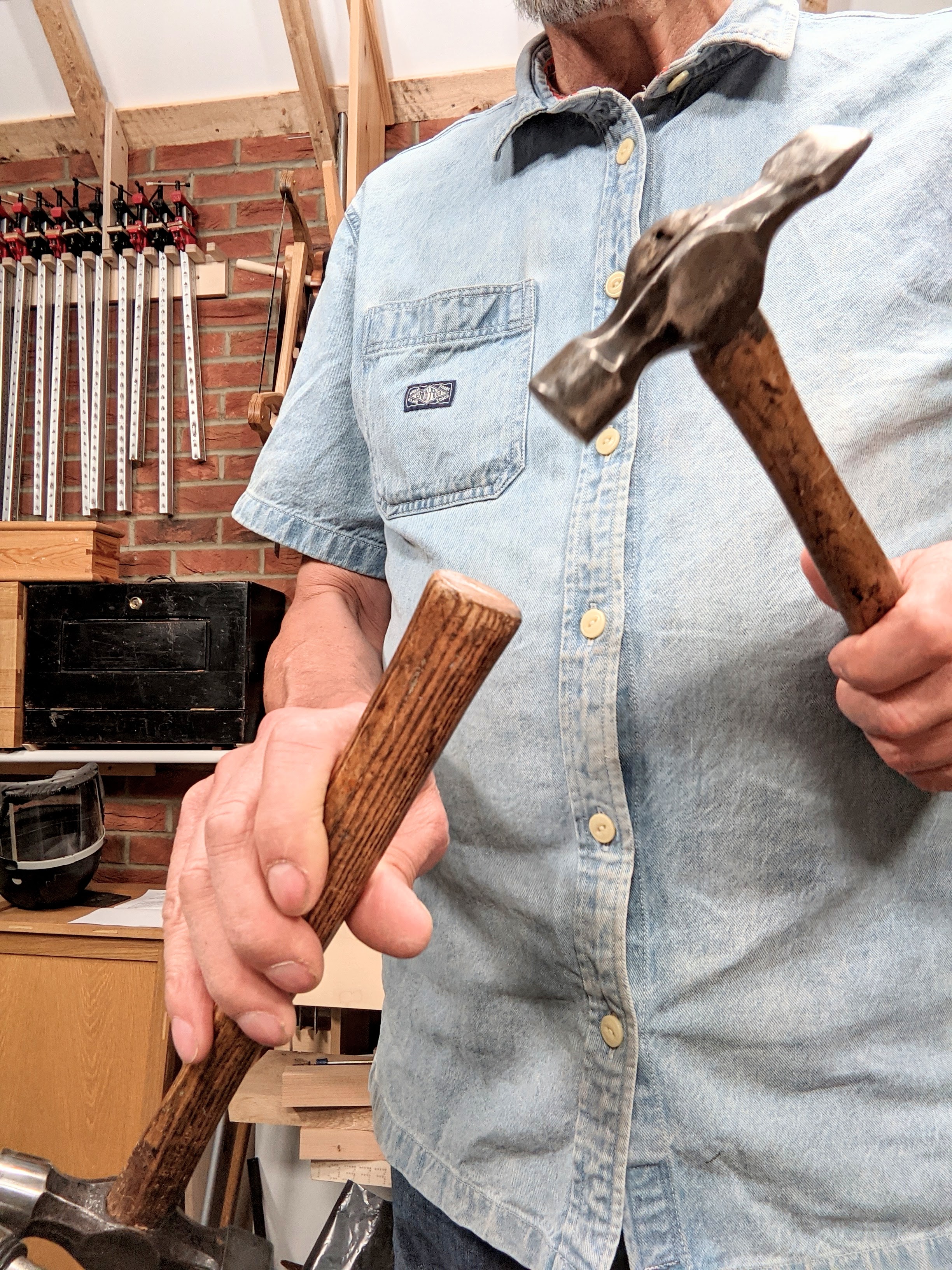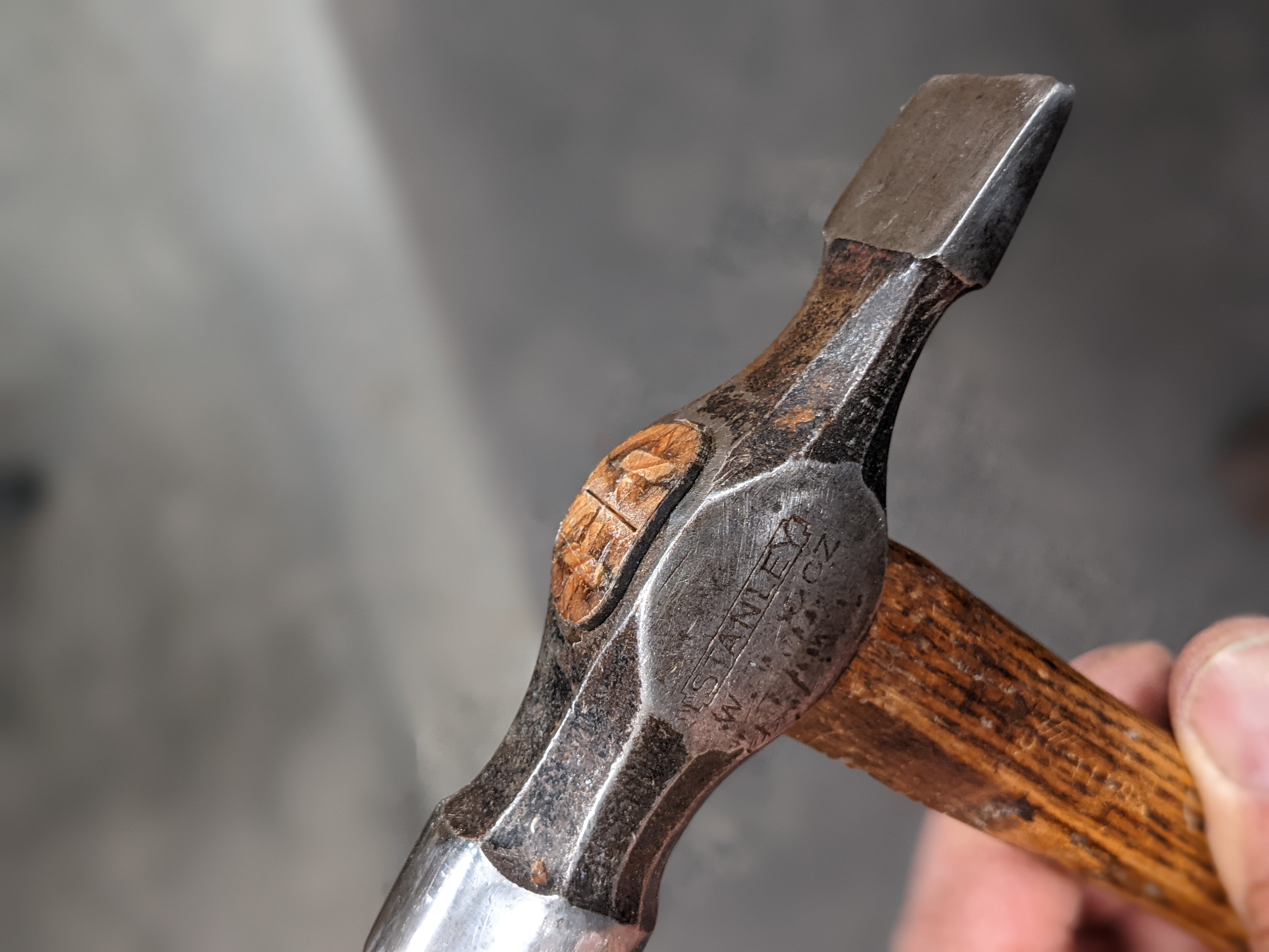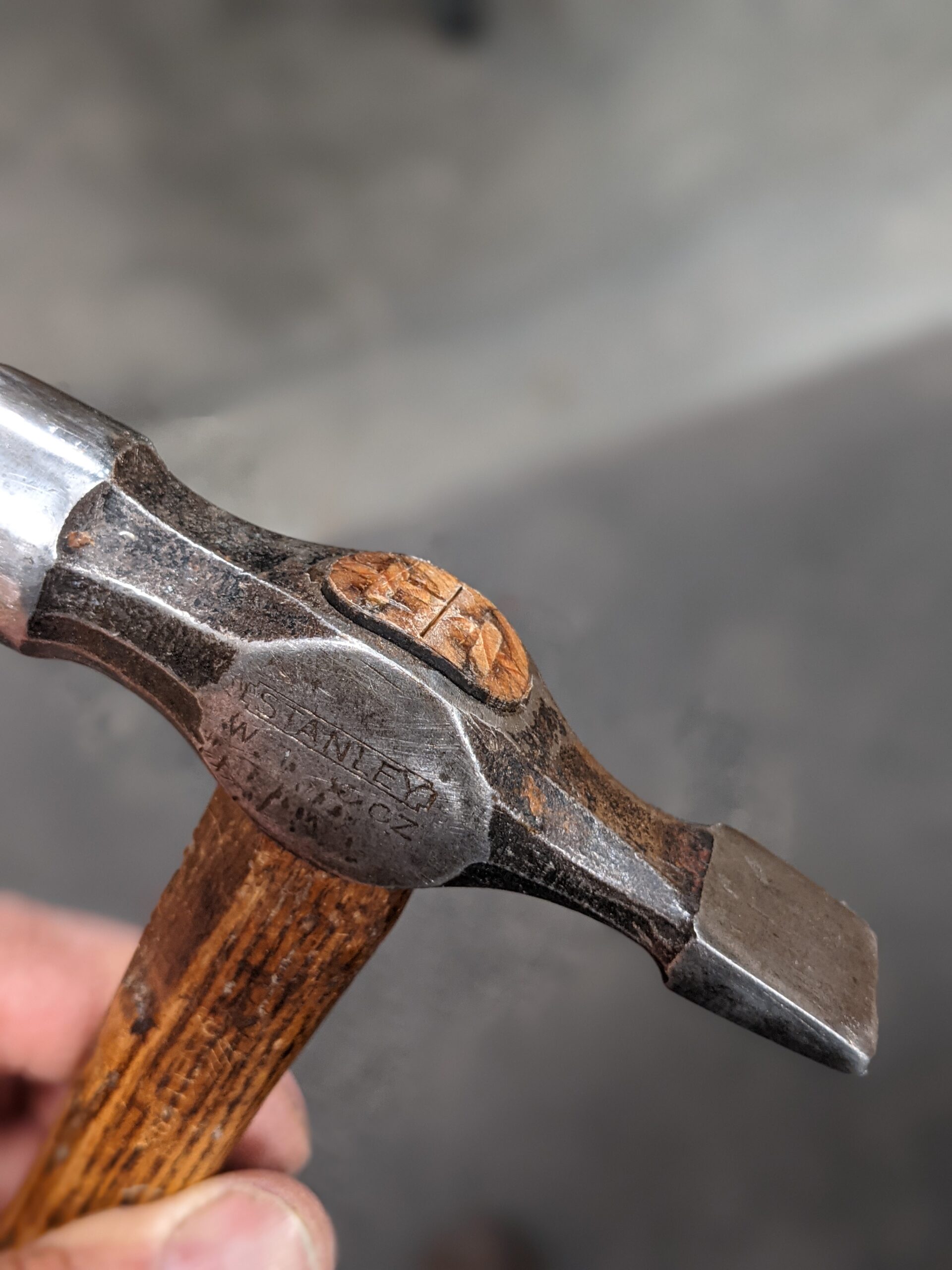 My Warrington cross pein hammer has been with me since 1966. It's from the days when it cost 30 pence and what was then 7 shillings and 6 pence (£0.7.6p), the simpler days when we had 20 shillings in a pound and 12 pence in a shilling, things cost half a crown, two bob, and then again a tanner, thruppence and more. As with almost all UK hammer shafts, axe shafts etc, the handle was ash. It was and is a Stanley 10 ounce and it is well used with 55 years of six-day weeks and between 8- and 10-hour days.