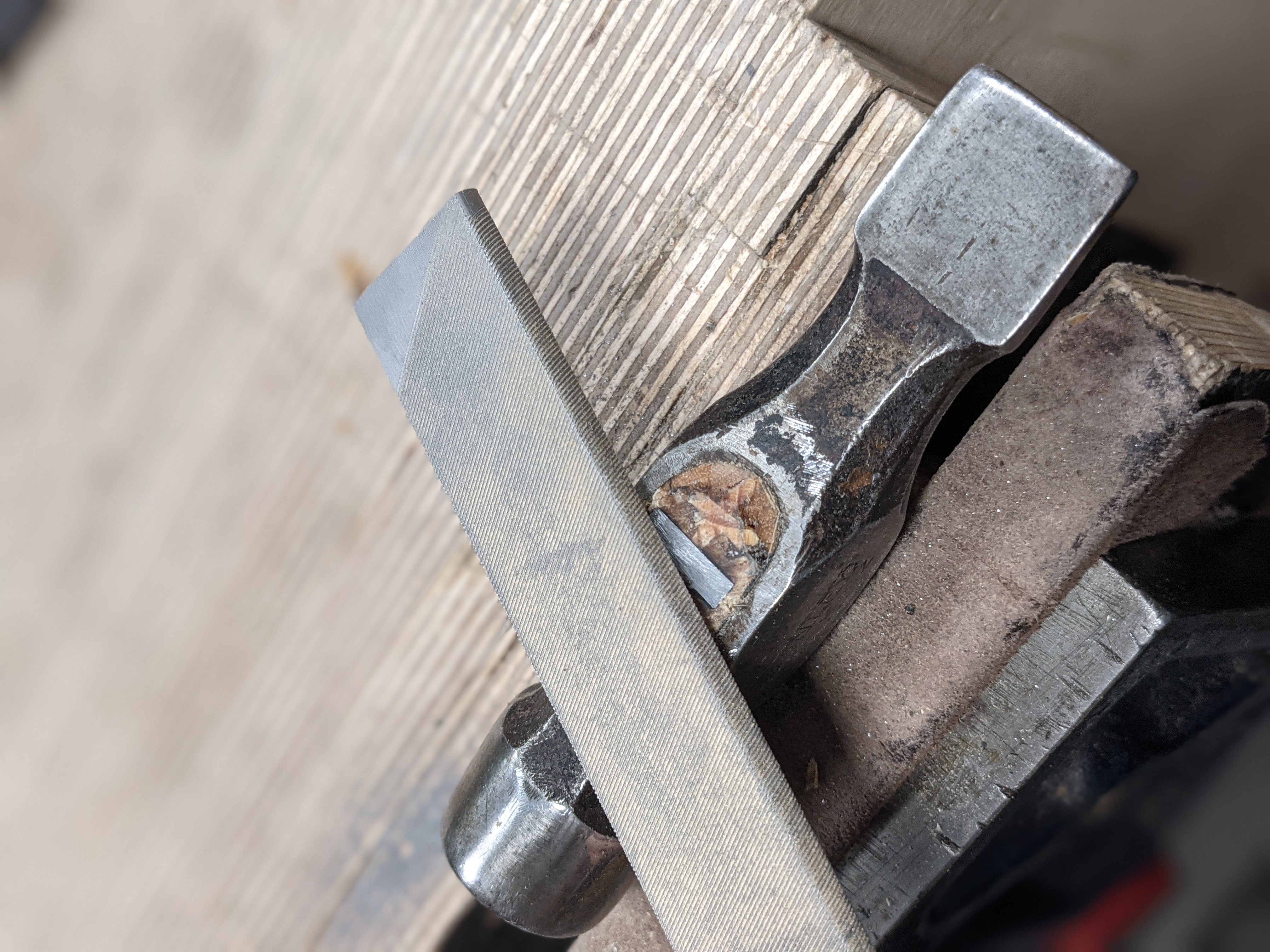 My hammerhead only came loose a few days ago so I decided to resolve the issue long-term. I don't know how it is where you live but many so-called hardware stores mostly stock household stuff like cleaners and plastic ware these days. Steel hammer wedges have long since gone, hence a general leaning towards procrastination. My wooden wedges cannot be tightened more for obvious reasons. Of course, you do get those 'experts' who say, "Leave it in a bucket of water overnight and that will fix it." Please don't.