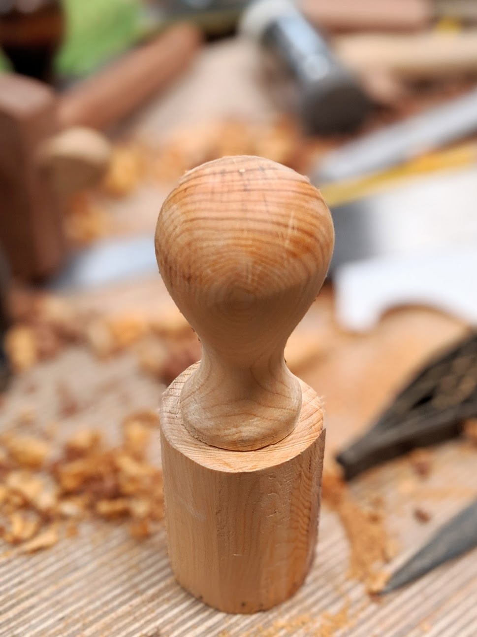 I reach for the hand plane I made the handle for and it's sized to my hand and to the task for which I use it perfectly. I reach for another that looks identical because I made the handle for that plane too. Both totes and knobs were made by hand, by me and without a lathe or power router. Both handles fit me, suit me but are different in that one handle is handled slightly larger. How much? The diameter of the tote is but 5mm (about 1/4") in diameter different around. The two different front knobs are identical in diameter, even though they're both carved and not lathe-turned, but one is taller than the other by 5mm.