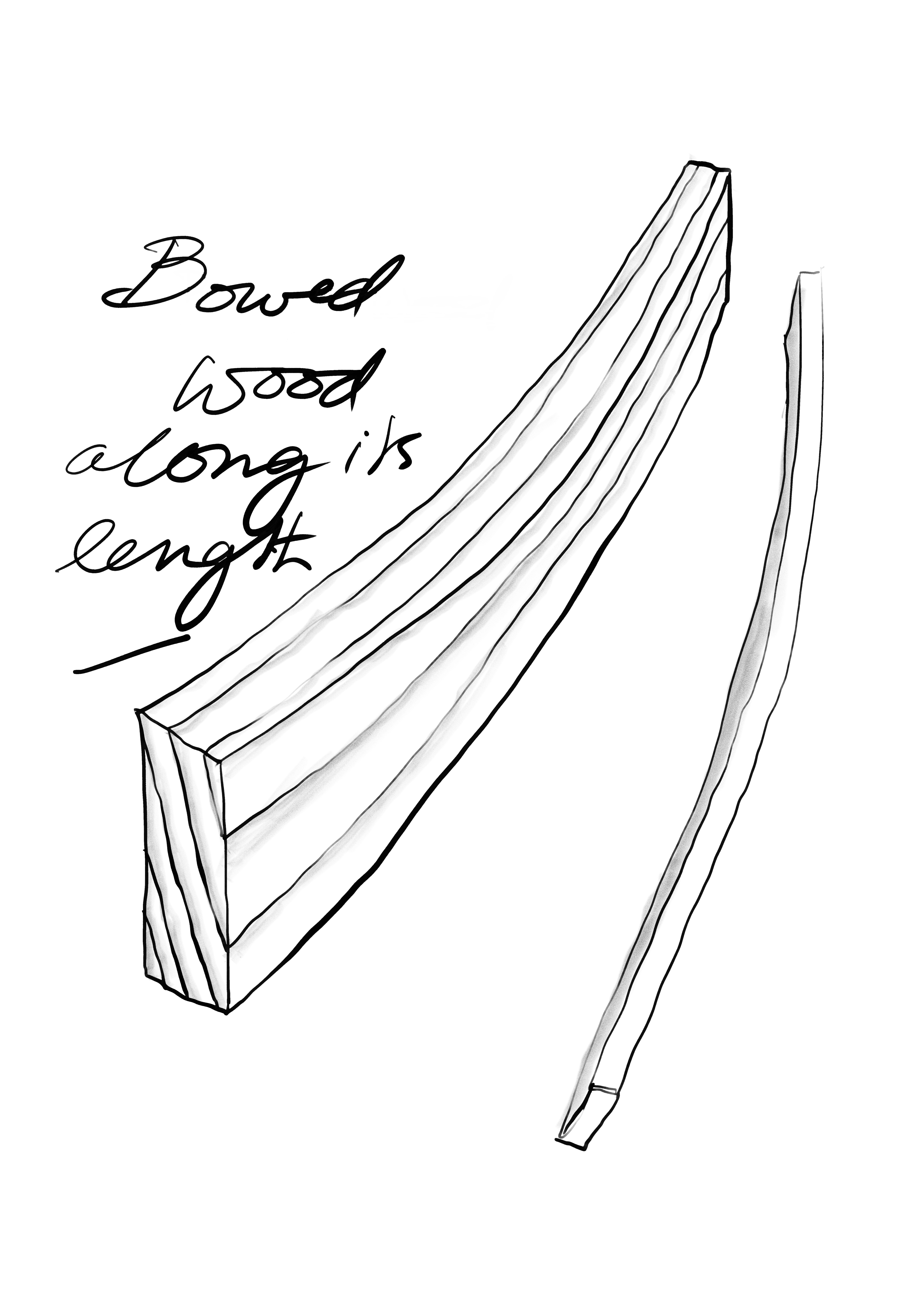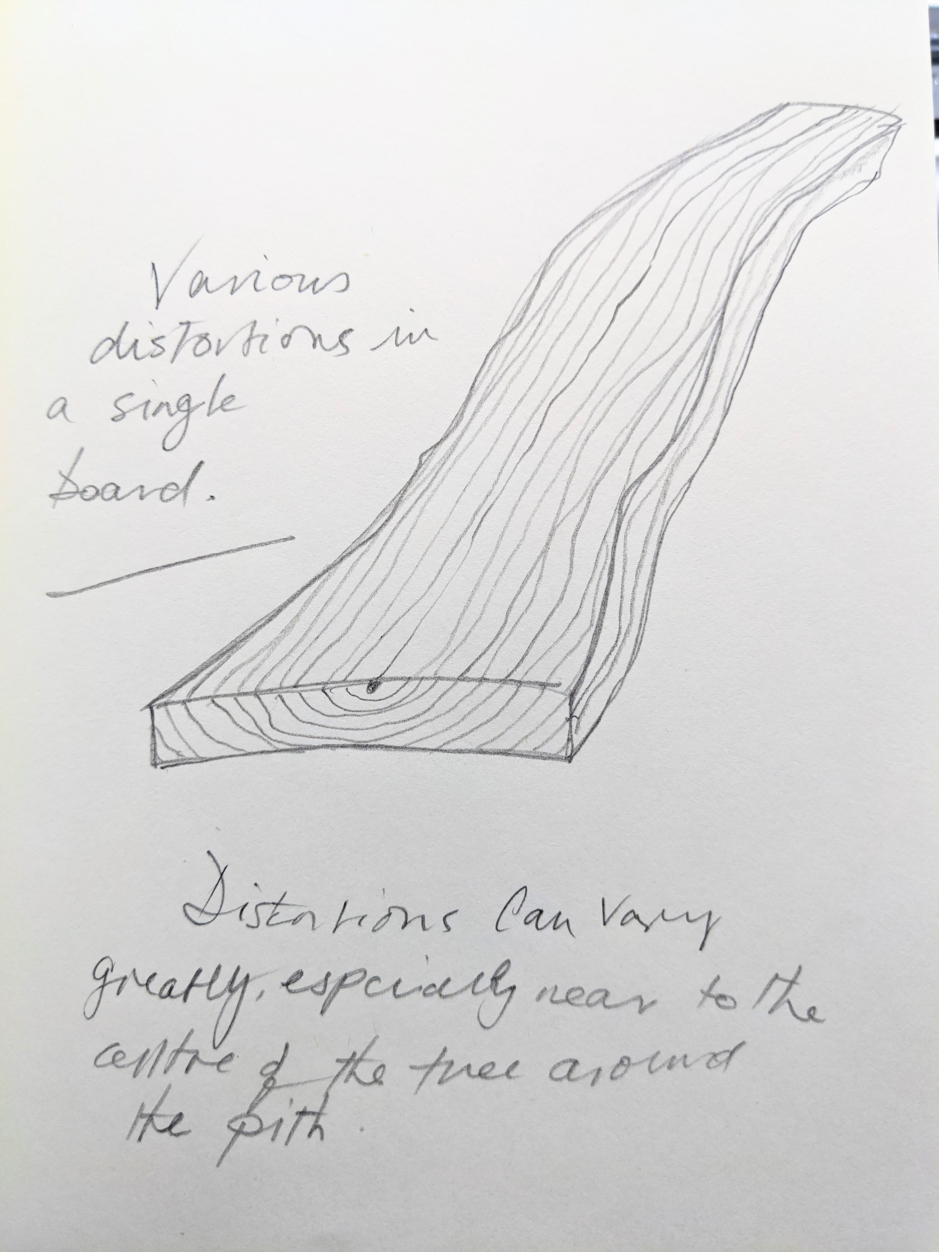 Cupped boards will be present in about 80% or more of the boards we buy simply because when the wood is cut green, as it almost always is, drying still must take place. Drying results in distortion of different kinds and at various levels and most of these are indeed predictable to a greater or lesser degree. Cupping, twist and bow will always be acceptable but not always accepted. If you go to a supplier looking for a flat, rough-sawn board every time, you will mostly be disappointed. I briefly covered the ways we can work it into our work in Why Shrink here. In other words most of our wood, once dried down to around 8%, will indeed be cupped to some degree. This cupping occurs as the wood is dried and it's because wood does not shrink to an even width or thickness and nor does it shrink in perfect parallel symmetry to its outer sawn faces, we must accept that we have yet more work to do.