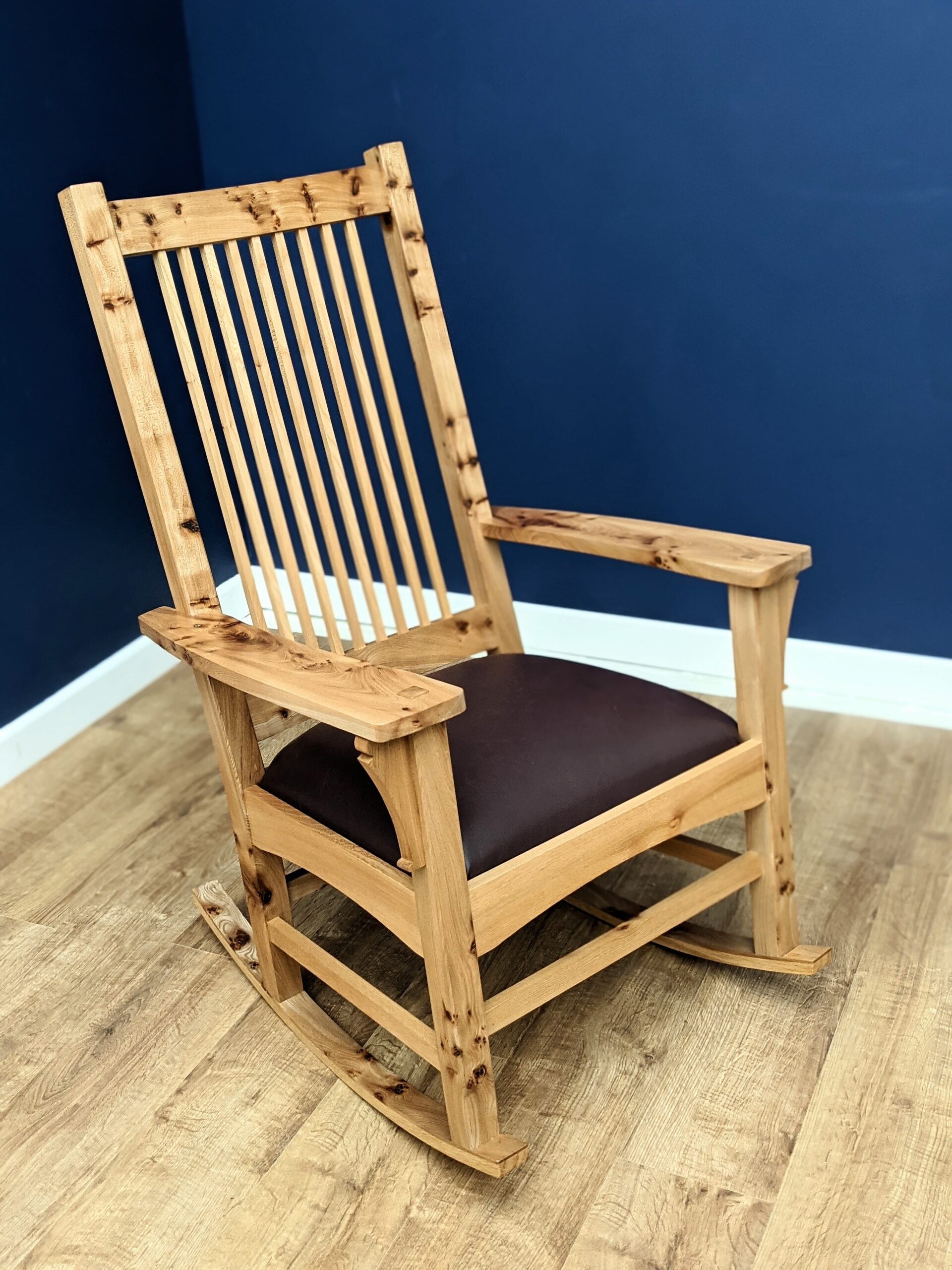 I have some elm wood I have been saving for the dining table. I am not one hundred percent sold on this, but I am as near as it gets. Johns's rocking chair in the Craftsman Arts and Crafts style above came from the same tree and I am wondering about a rocker from the same wood if I have enough space in the new dining kitchen too.