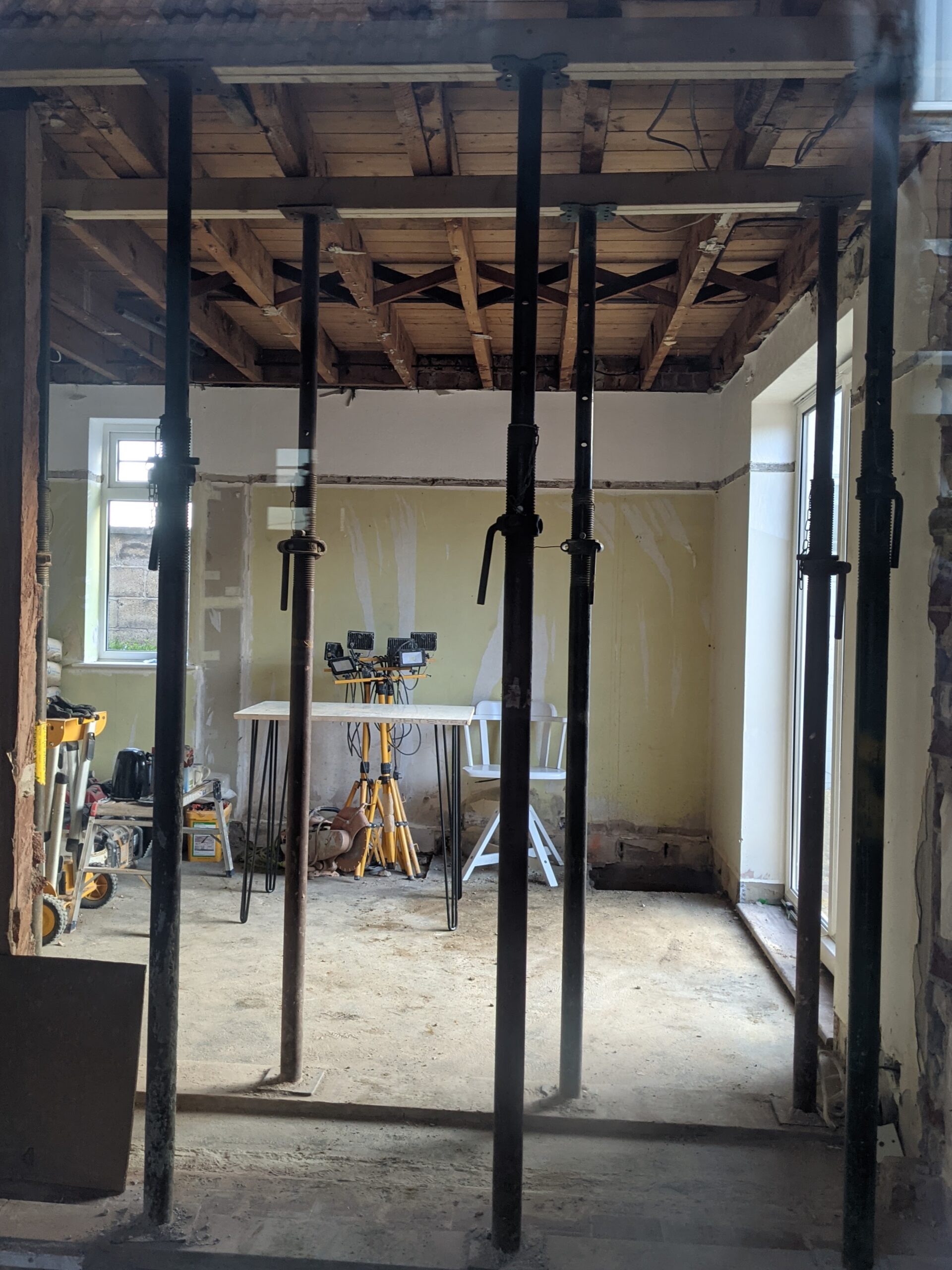 Progress on the house redevelopment is continuing, and this week the builders took over the hub of the house to extend the kitchen and dining room and to combine them into one. Walls were dropped, floors came up and then the ceilings came down too, all intentional developments. Quite an upheaval but everything in there needed more than a facelift. We are adding a utility room and a second bathroom into the equation, just for good measure while the construction (actually demolition) is underway. What once stood as walls seems to take ten times the space when dropped. First the negative and now for the positive.