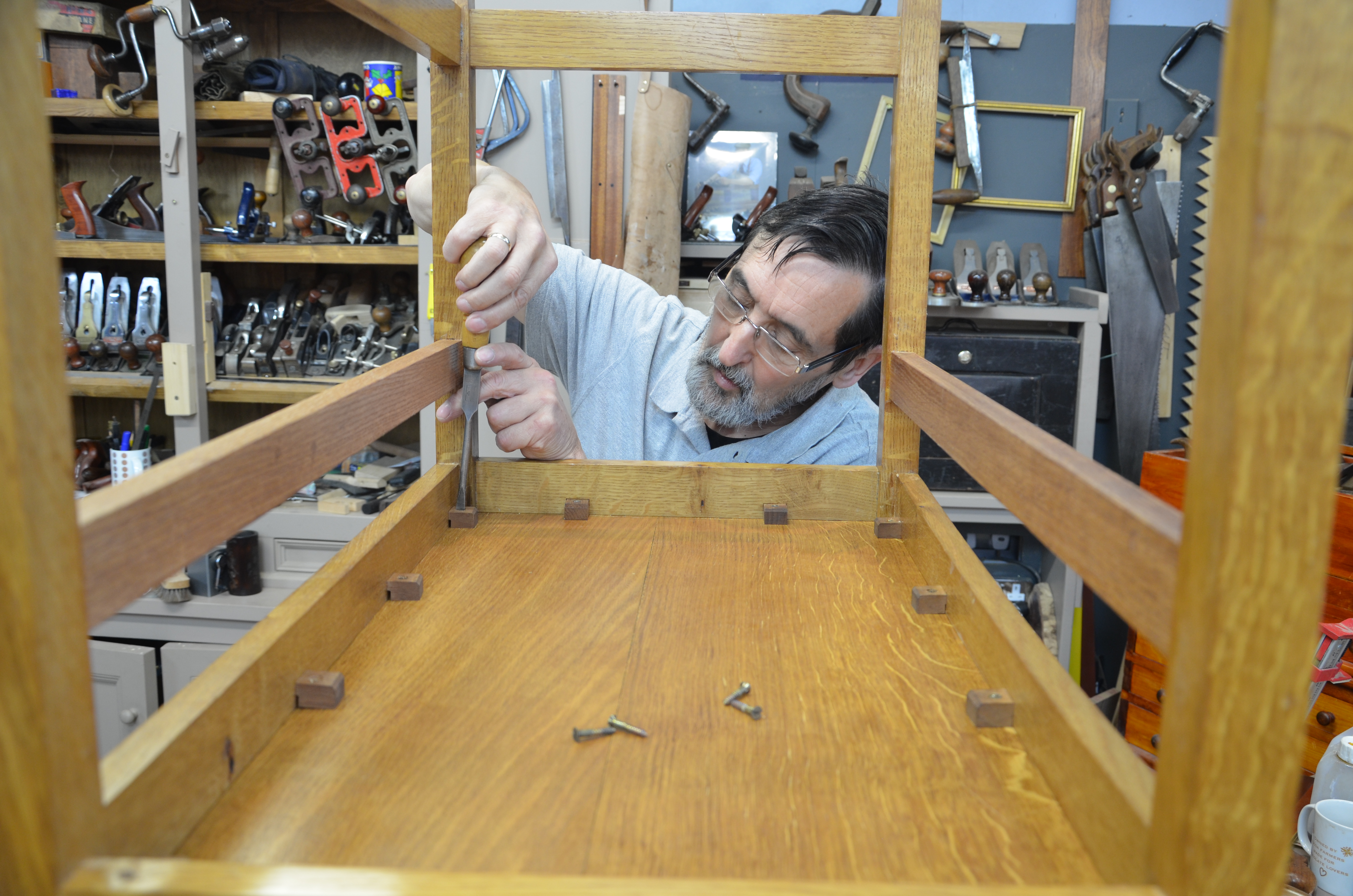In most cases, our wood is ultimately constrained by additional elements used in construction, the glued areas, jointed areas and then additional constraining influences such as turn buttons to the undersides of tabletops, or bread-board ends. Now, I say constrained but I am always surprised by how much or how little wood can be held in check (no pun here). I have a tabletop made years ago that was crowned round and pulled down with a single turnbutton quarter of an inch. It went flat and stayed flat and when I released the turnbutton screw the tabletop remained flat.