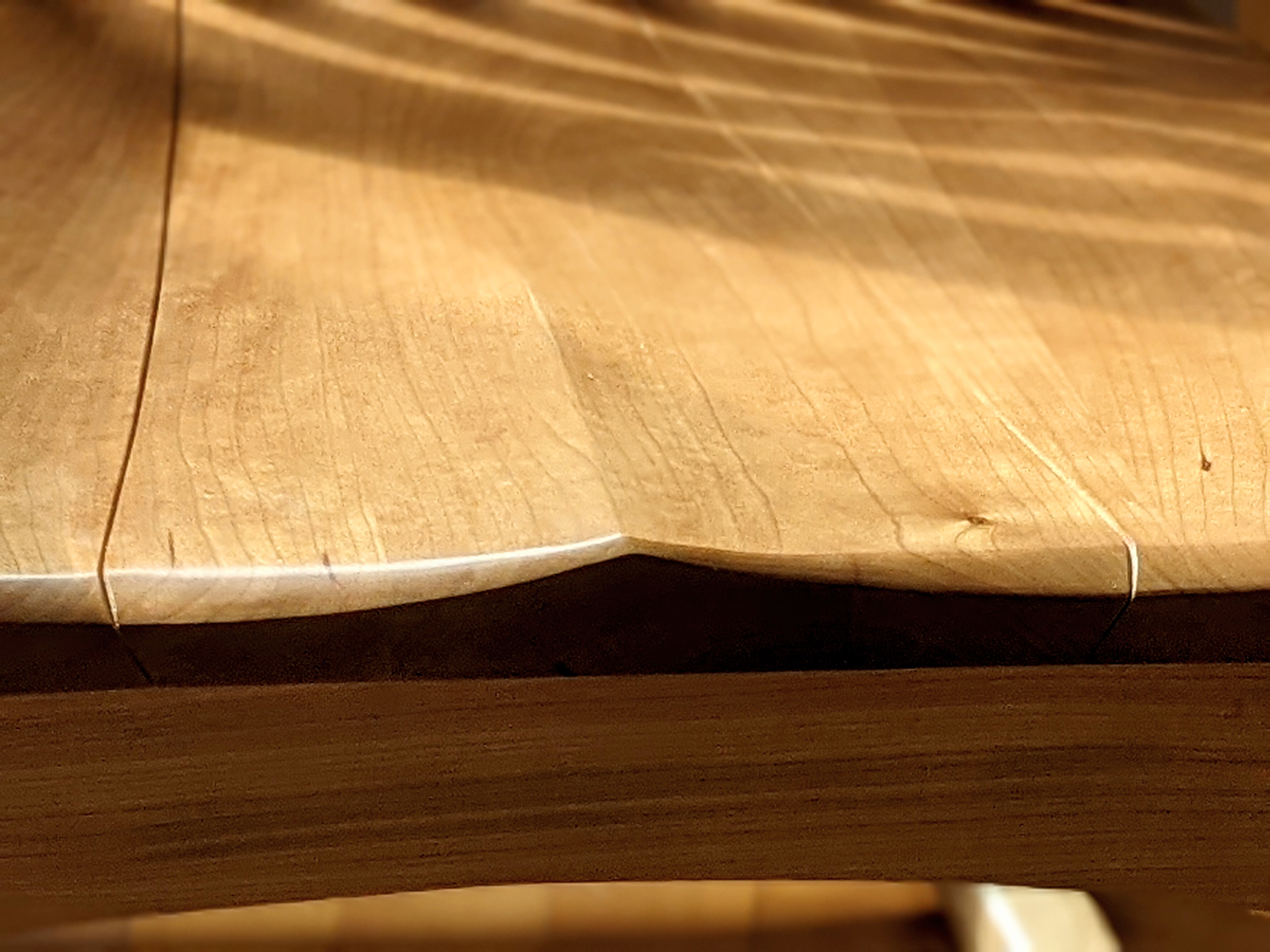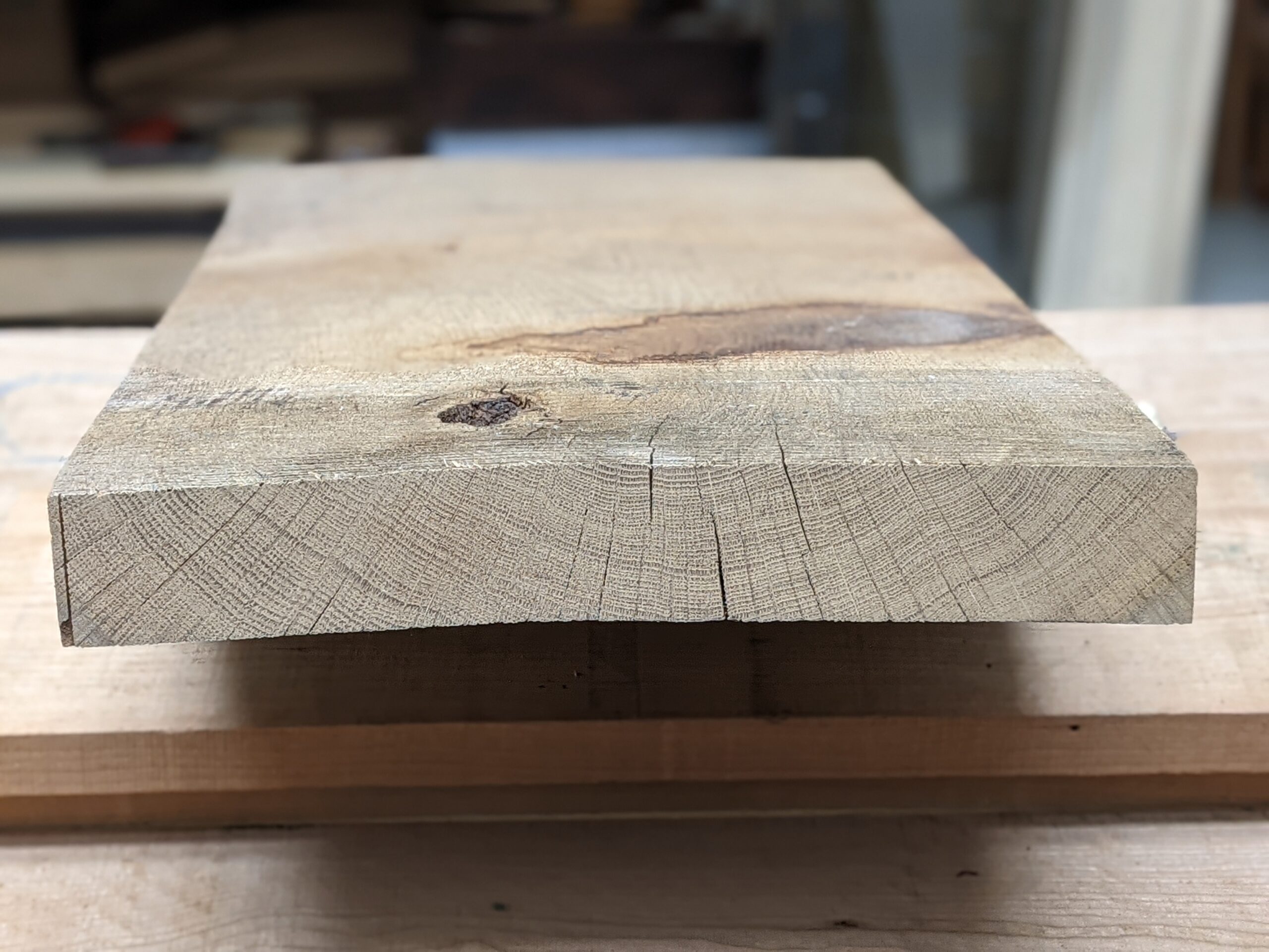 If we see that wood shrinkage is indeed diversely variable throughout its length, width and thickness, and then too within its species and without, we understand that there will be unpredictabilities we must learn to work with too. This is not a choice. We must try to predict an outcome which can be like predicting the weather and in some ways, it is that too because weather changes, how often a family takes showers how much it cooks food, sweats and more, will affect our precious wood. To get into this is complicated beyond need. Sapwood and heartwood shrink and expand at different rates, often resulting in conflicting levels when the wood finally reaches some kind of equilibrium in its final home space. By the time this happens, the wood becomes 'set' and little will change without reworking the surfaces to straighten and level everything by the removal of wood.