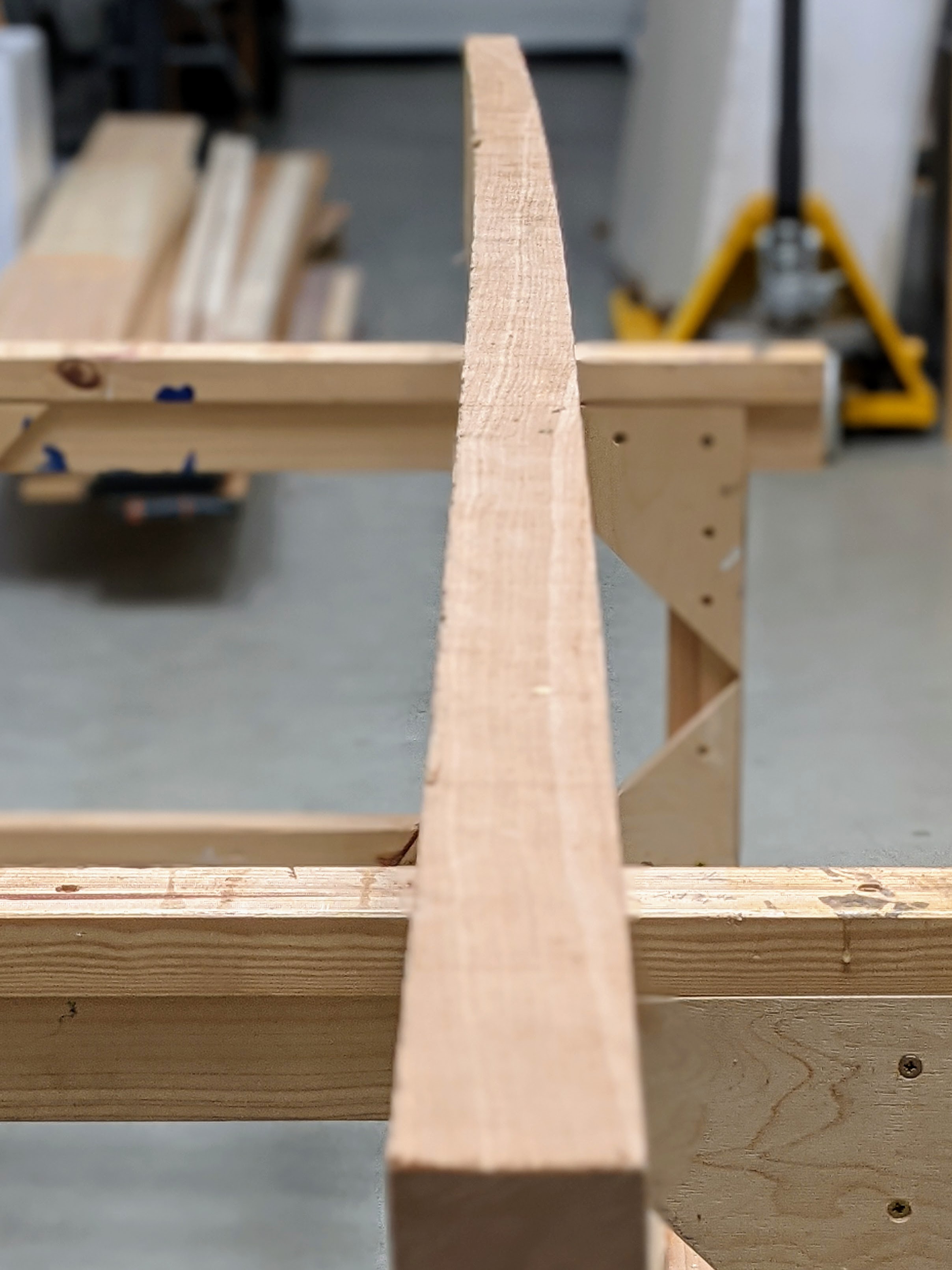 I prefer not to use the practice because such a technique works best with narrow sections of wood rather than the wide boards I prefer. In most cases, should the board curve in a continuous arc, the arc can readily be pulled to flatness without overstraining the wood. We often do this with a tabletop to say a table apron where we use turnbuttons or enclose the edges of a panel into a grooved frame.