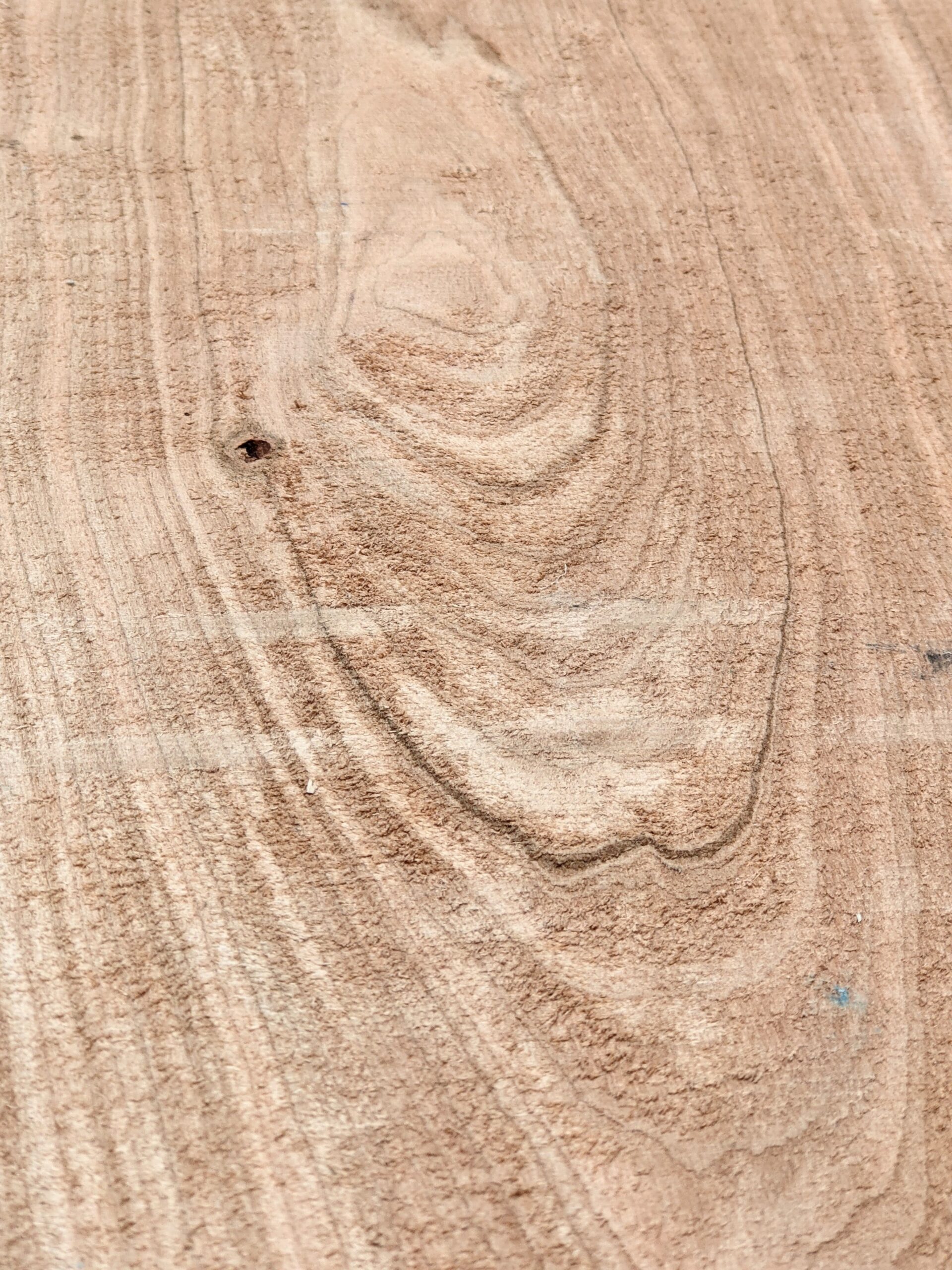 The surface textures left from the industrial saw leaves telltale 'calf licks' or 'cowlicks' in the surface of a board. Just as in human hair, these cowlicks show that sub-fibres in the grain of that section of wood have a momentary shift in grain direction. At this level, there is no way of knowing exactly which direction this change has taken and even in a subconscious consideration of the overall condition of the wood, we might decide to reject such aboard.
