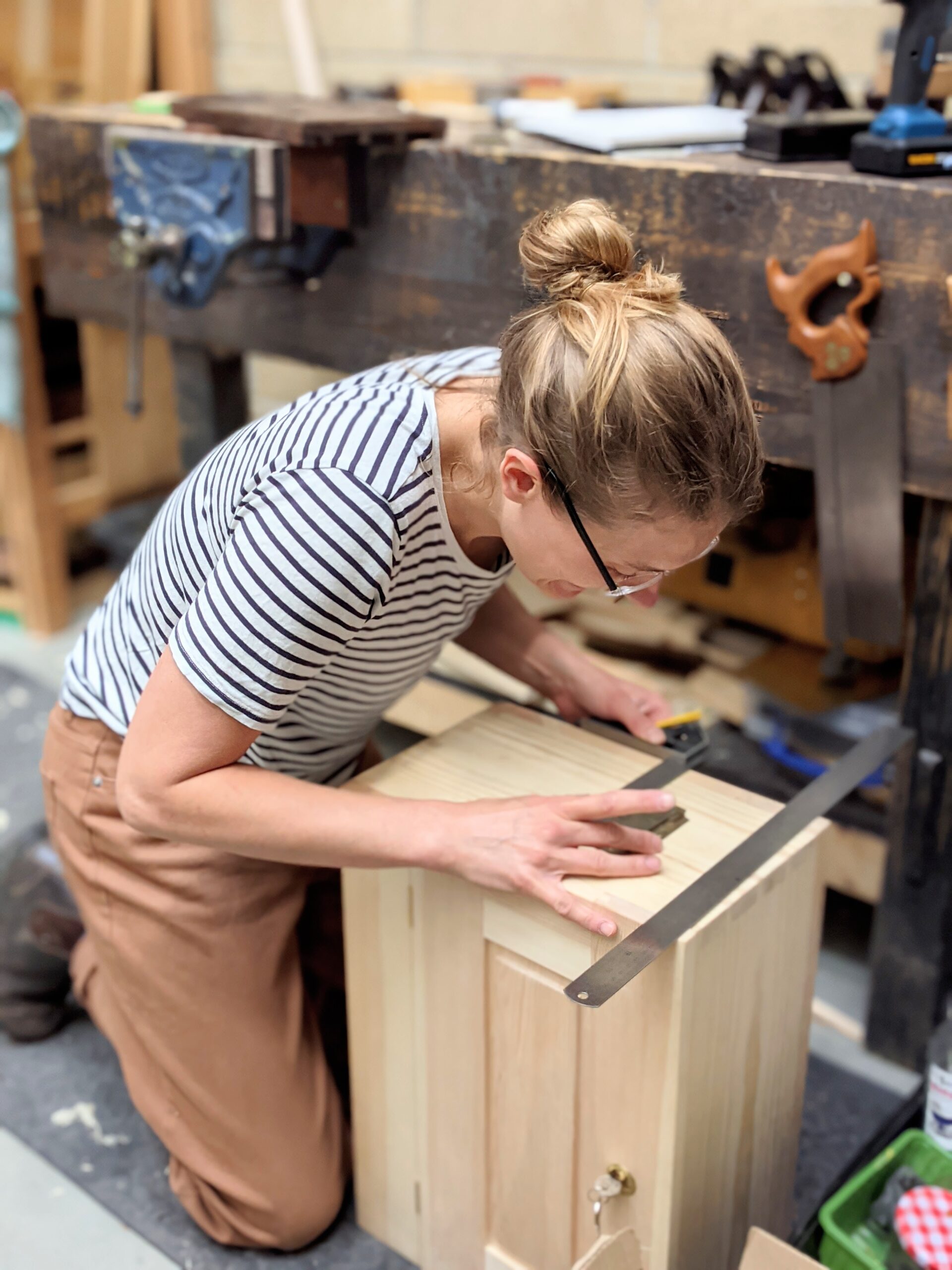 Through the years I have always encouraged those new to woodworking to allow greater body flex to take place rather than force compliance with that iron-fisted determination we have all had, which is often the way when a woodworker thinks that woodworking is a forceful issue rather than a developed sensitivity. I sharpened up my saws and chisels and planes before I began because, well, that's what we hand tool woodworkers must do if we are intent on working wood by hand. I like that the saw slice-cuts tight to the knifewall even in dense and hard-grained hardwood